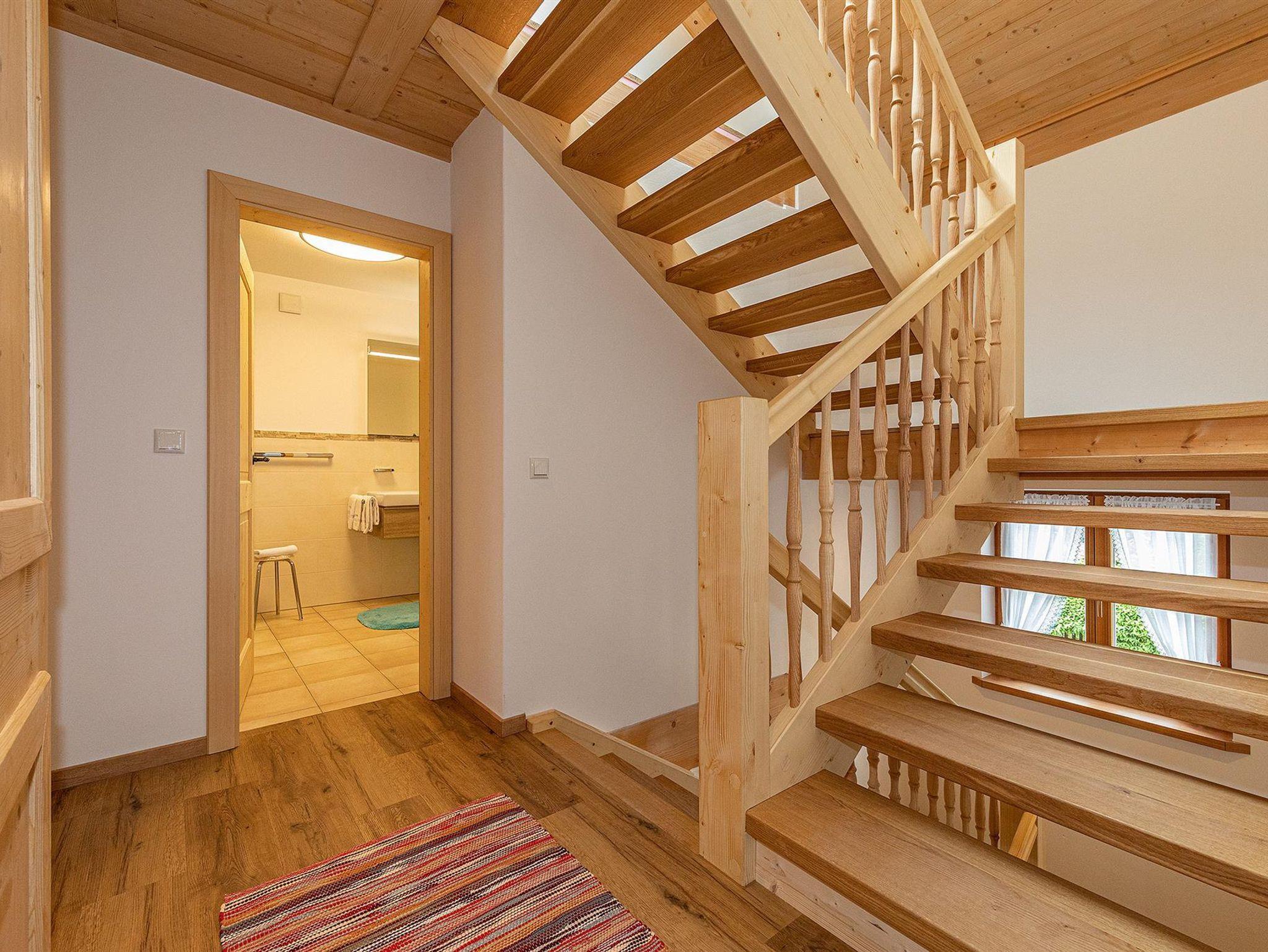 Um Ihren Aufenthalt so angenehm wie möglich zu gestalten, ist die Haushälfte 4erspitzblick (Süd–Ost) mit seinem Eingangsbereich /Flur mit einer Garderobe eingerichtet. Auch ein Tages –WC und Wirtschaftsfraum (WM +TR) befindet sich im EG. Die Komfort-Küche mit Essecke ist komplett eingerichtet und ausgestattet. Der Wohnbereich bietet mit Couchen und Sessel viel Platz für gemütliche Abende. Von beiden Räumen können Sie die möblierte Südterrasse betreten. Im 1.OG finden Sie ihre drei Schlafzimmer welche aus Zirbenholz handgemacht sind. Von allen Schlafzimmern (2 Doppelschlafzimmer und einem Schlafzimmer mit Etagenbett (2 Betten 90x200 cm) haben Sie Zutritt auf die Balkone. Das großzügige Familienbad hat neben der ebenerdigen Relaxdusche , WC, BIDET, Handtuchwärmekörper und einen großen Waschtisch und Fön viel Platz für Sie. Für höchste Sauberkeit ist die gesamte Wohnung nur mit Holz- und Steinböden ausgestattet und somit für Allergiker geeignet.