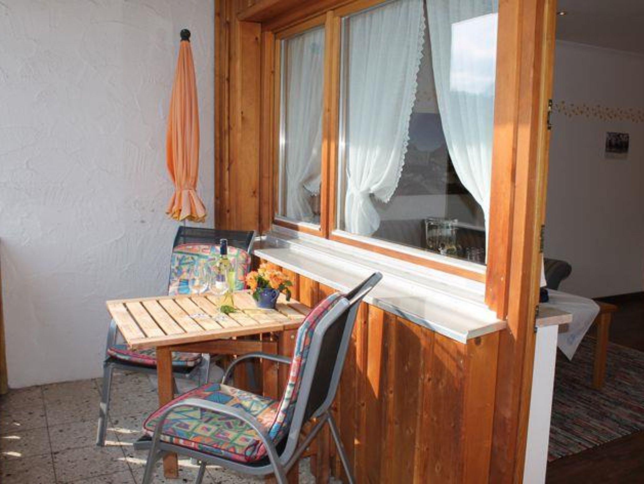 Genießen Sie den herrlichen Bergblick auf unser wunderschönes Karwendel- und Wettersteingebirge von dem Südbalkon Ihrer gemütlichen Ferienwohnung mit 28m². Wohn-Schlafzimmer mit Schrankbetten (normale Betten, tagsüber im Schrank, brauchen abends nur ausgeklappt werden), bequeme Sitzgruppe und Essecke, SAT-TV, Radio, Telefon; sep. Küche mit Kochplatten, Mikrowelle auf Wunsch, Kühlschrank mit Gefrierfach, Kaffeemaschine, Wasserkocher und kompl. Geschirr; Dusche/ WC, Fön; Balkon mit Sonnenschirm und Gartenmöbeln; Bettwäsche, Handtücher, Tischdecken und Geschirrtücher vorhanden