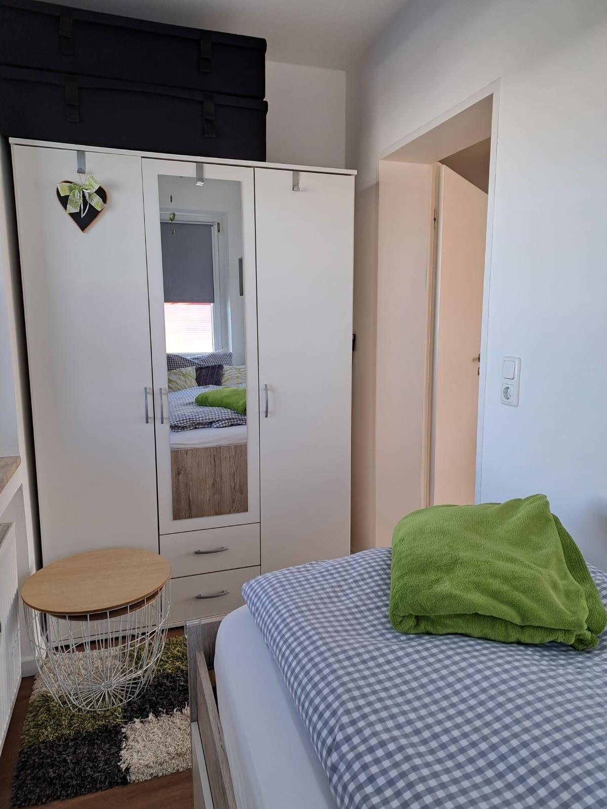 Separates kleines Extrazimmer mit Bett für 1 Person und Schrankplatz.