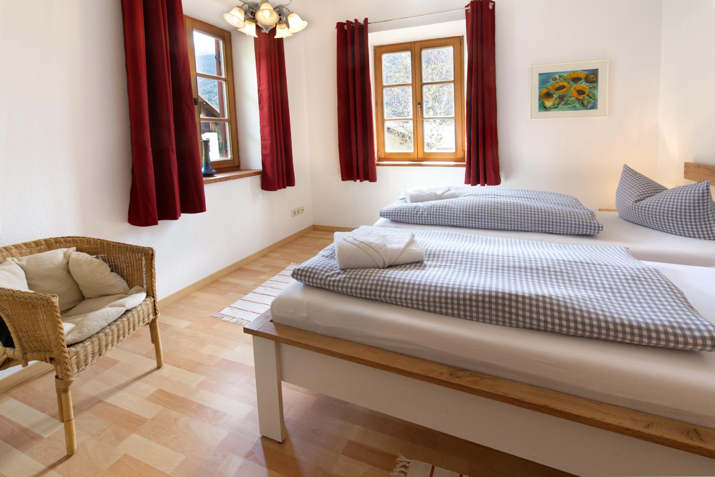 Die Wohnung besteht aus drei Zimmern. Zwei separate Schlafzimmer mit einem Doppelbett bieten ausreichend Platz für vier Personen. Das Wohnzimmer besitzt einen Zugang zum kleinen Balkon und ist sehr gemütlich eingerichtet. Hier werden sich Wanderer, Radler und Wintersportler rundum wohlfühlen. Kinder und Haustiere sind herzlich willkommen.
