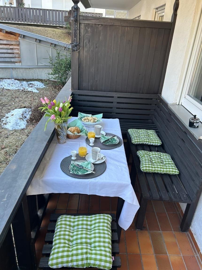 Wohnkomfort: Der schöne, große Balkon lädt zum Entspannen und Verweilen ein. Hier können Sie den atemberaubenden Blick auf die umliegenden Berge genießen und Ihre Seele baumeln lassen.