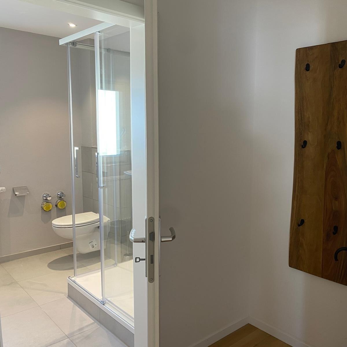 Großzügiges Badezimmer mit moderner Dusche - perfekt für entspannte Momente