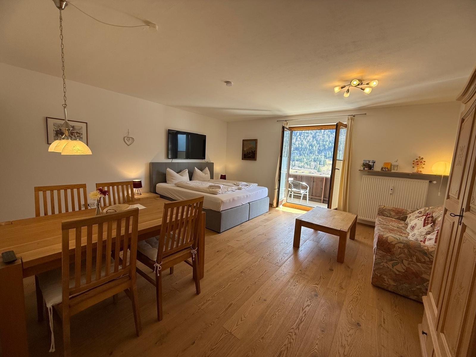 Sehr gemütliche 40?m² große Ferienwohnung für 1-2 Personen mit atemberaubendem Blick auf das gigantische Karwendelgebirge. Die Wohnung verfügt über einen großen Balkon, eine voll ausgestattete Küche (ohne Geschirrspüler).