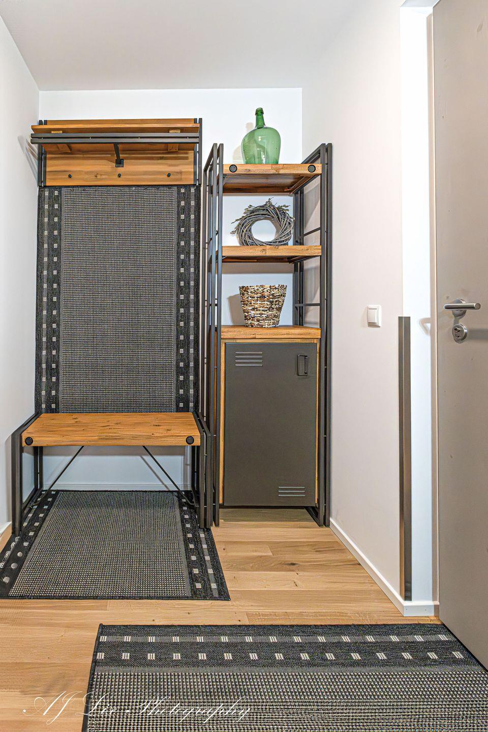 Im Flur finden Sie die Garderobe mit Ganzkörperspiegel sowie einer Sitzbank zum An- und Ausziehen ihrer Schuhe. Ausserdem haben Sie auch eventuell notwendige Putzutensilien – insbesondere Staubsauger – gleich griffbereit.