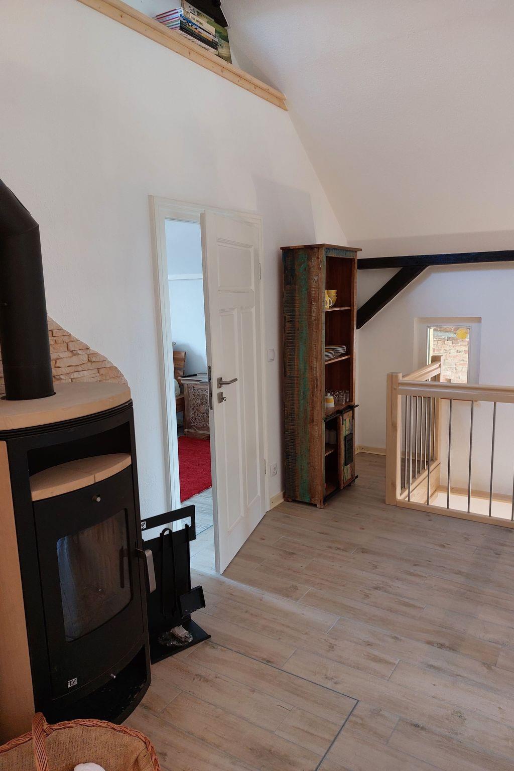 You will spend your holiday on a former farm, built around the turn of the century (1900). After reunification, it was used as a horse farm for almost 20 years. Large parts of the farm have been renovated. The farm is in a very quiet location in the village of Weddin with 87 inhabitants. At night you can only hear the animals in the forest. This beautiful four-sided farm is nestled in the beautiful foothills of the Fläming. Surrounded by large, species-rich forests and cultivated landscapes. The Hoher Fläming Nature Park Centre (Tourist Info) in the village of Raben is just 17 km away, as is Rabenstein Castle (first mentioned in 1251). There are countless kilometres of hiking trails and cycle paths in the Hoher Fläming Nature Park.