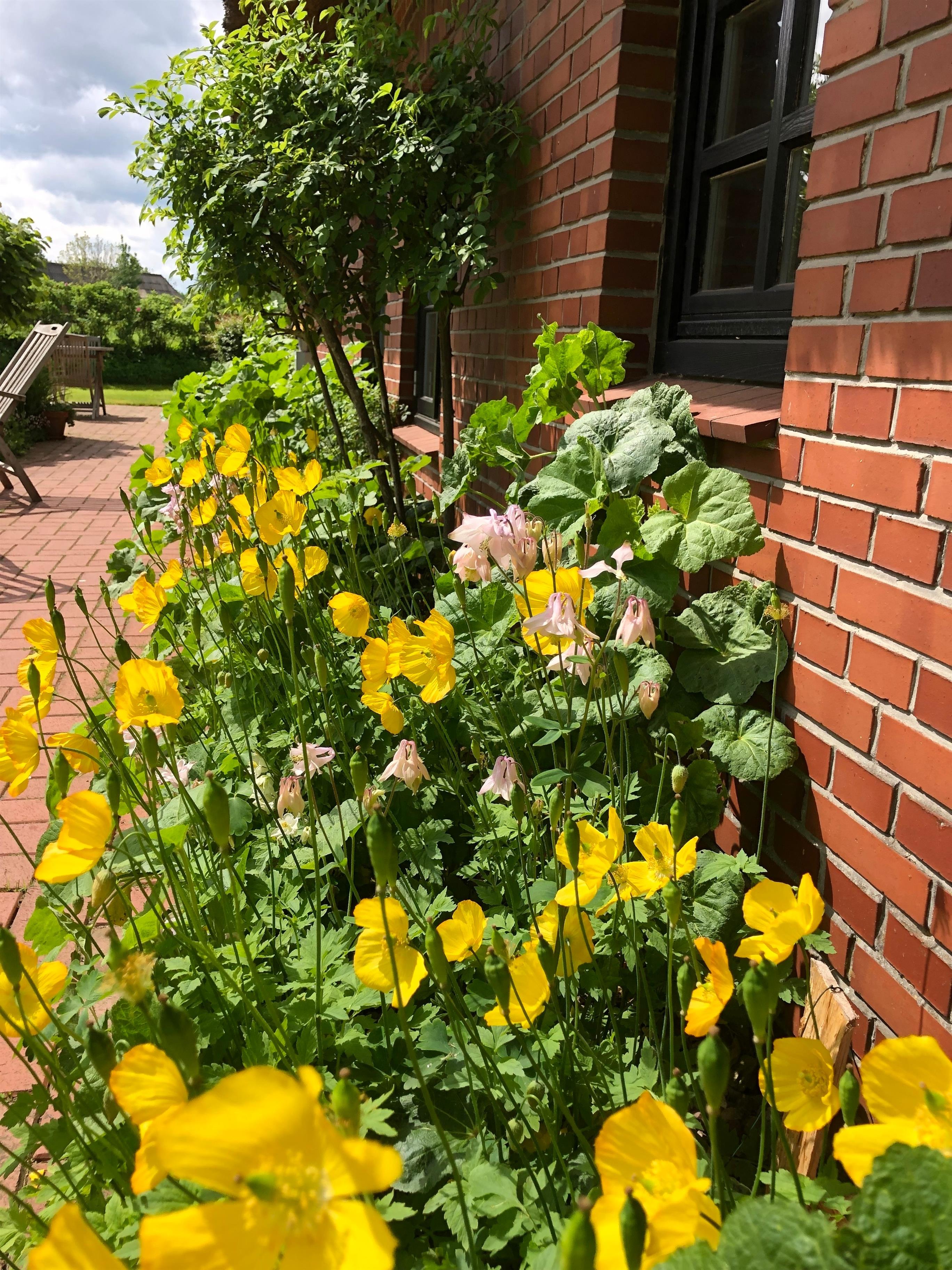 Sie betreten im EG den gemütlichen Wohn/Essbereich mit Fußbodenheizung und gut sortierter Küche von wo Sie direkten Zugang zur großen Terrasse haben. Der Blick schweift über alte Obstbäume, Wiesen und Eichen unter denen es sich wunderbar in bequemen Liegestühlen träumen und entspannen lässt . Stockrosen, Mohn, Lavendel und Akeleien wachsen in üppiger Fülle rings ums Haus. Oft kommen in der Dämmerung Rehe und Fasan bis auf das Grundstück.