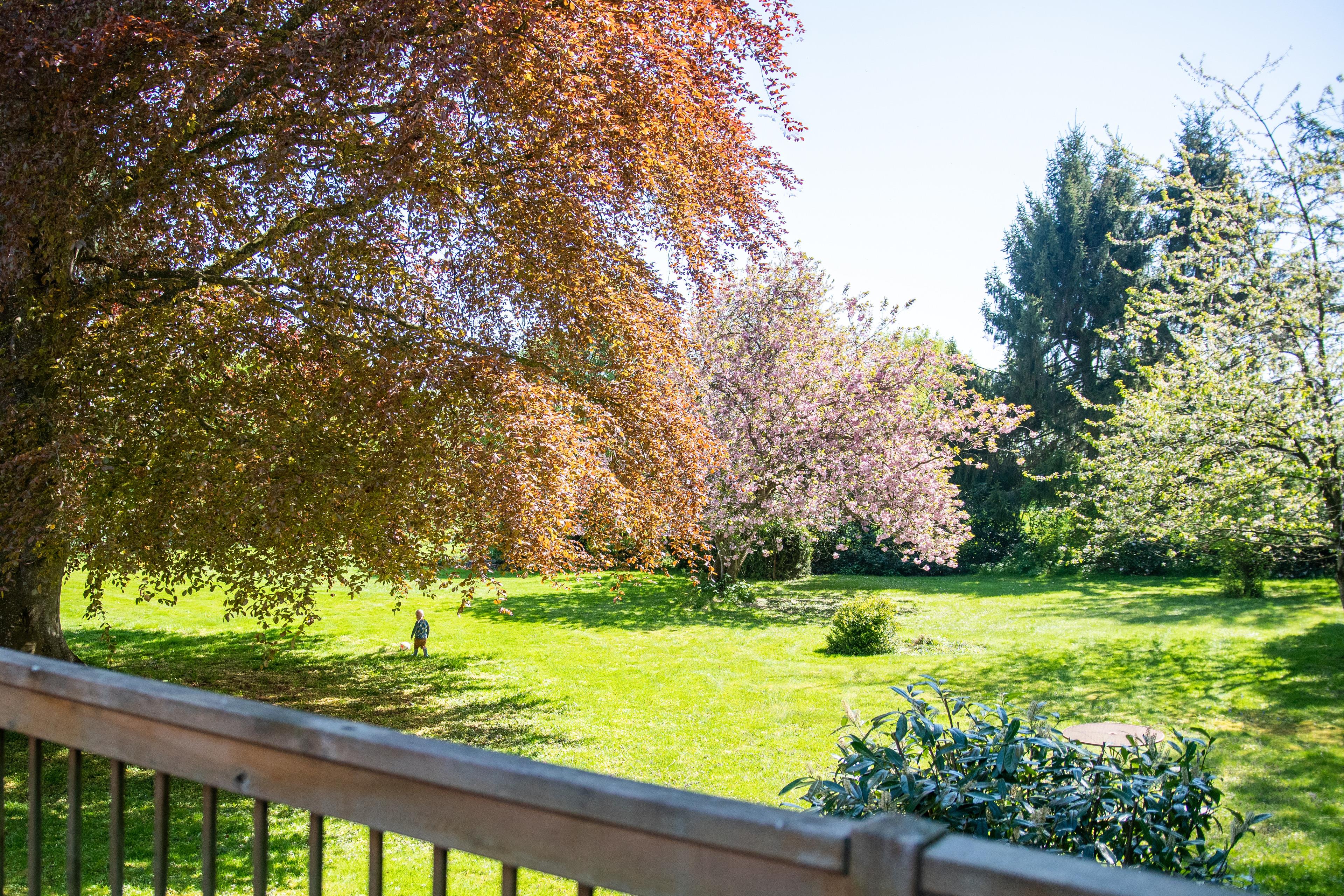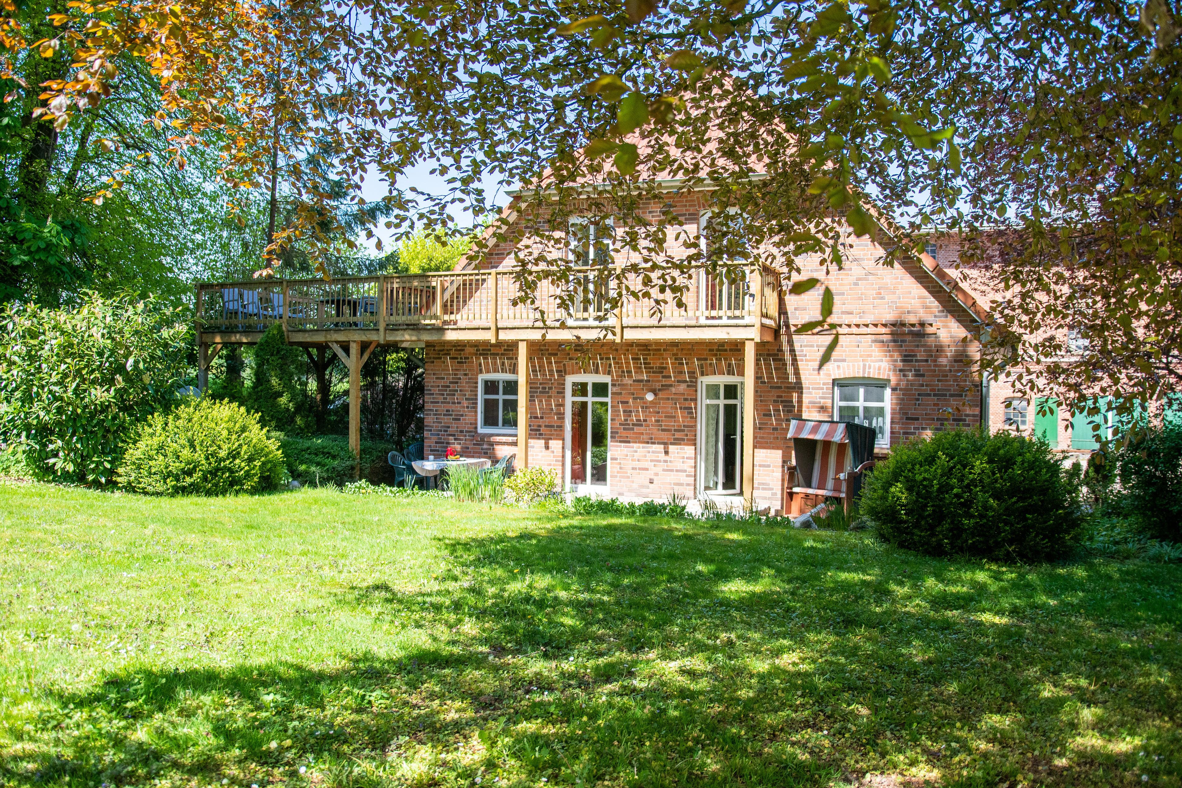 Helle Ferienwohnung mit großem Balkon & traumhaftem Ausblick auf Wald und Wiesen – Wohnung Sonnenschein auf dem Ferienhof Baustrup: familienfreundlich, hochwertig ausgestattet & haustierfrei.