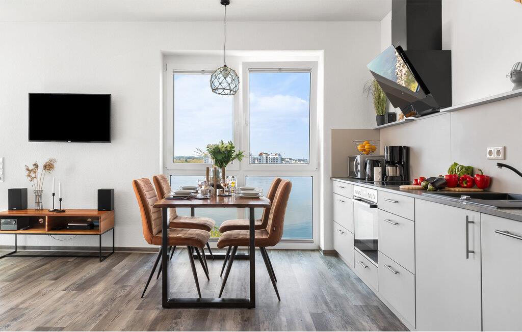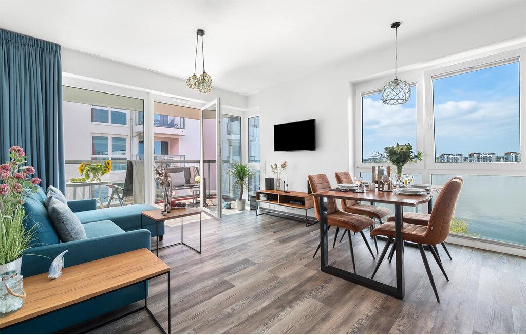 Det moderne og fuldt udstyrede køkken lader intet tilbage at ønske og inviterer til fælles madlavning. Uanset om morgenmad, frokost eller en festlig middag, her har I alt, hvad I behøver, direkte foran panoramavinduet. Til underholdning i nordisk regnvejr er der Wi-Fi og tre Smart-TV'er til rådighed i lejligheden.