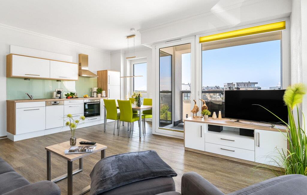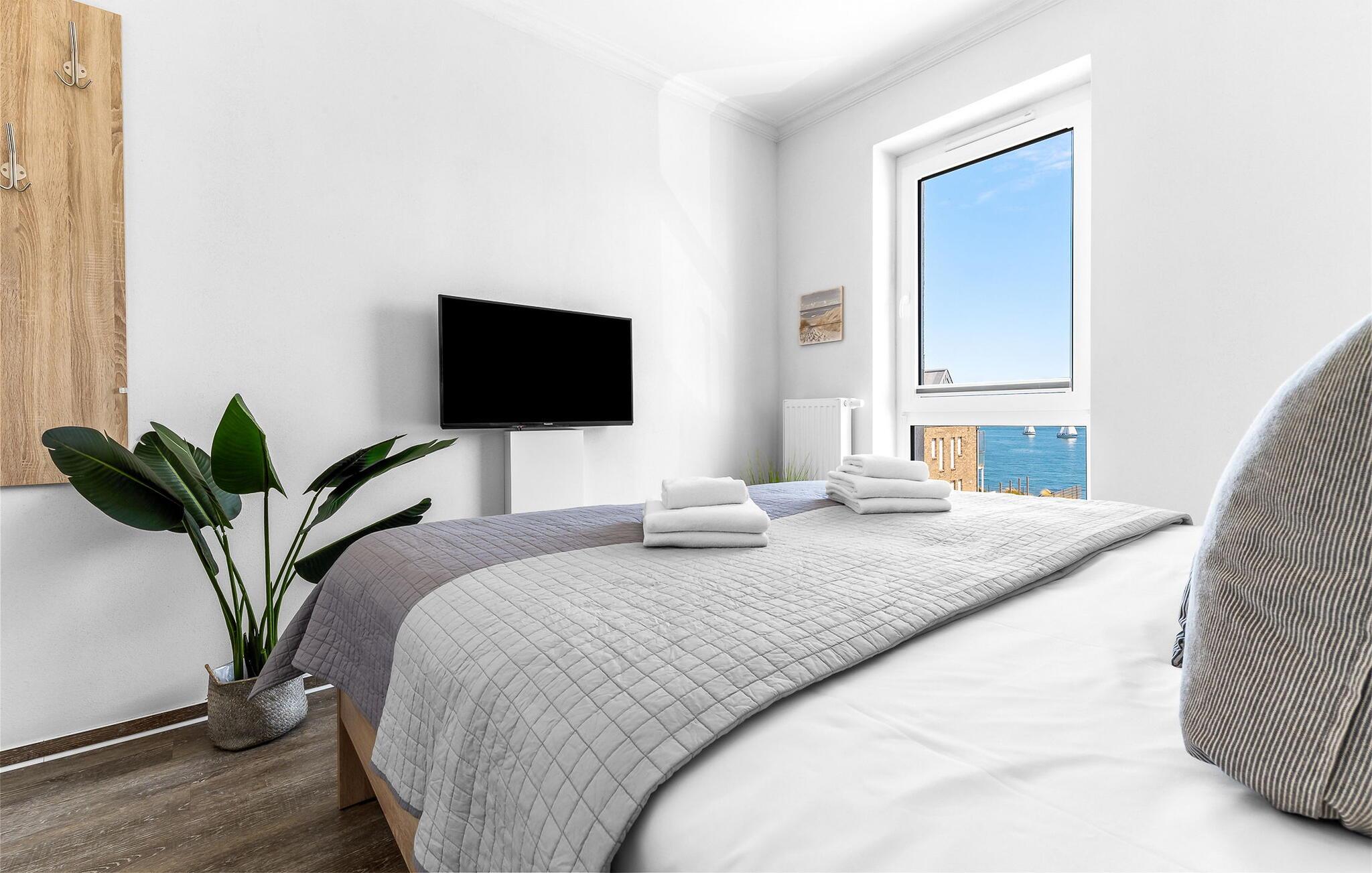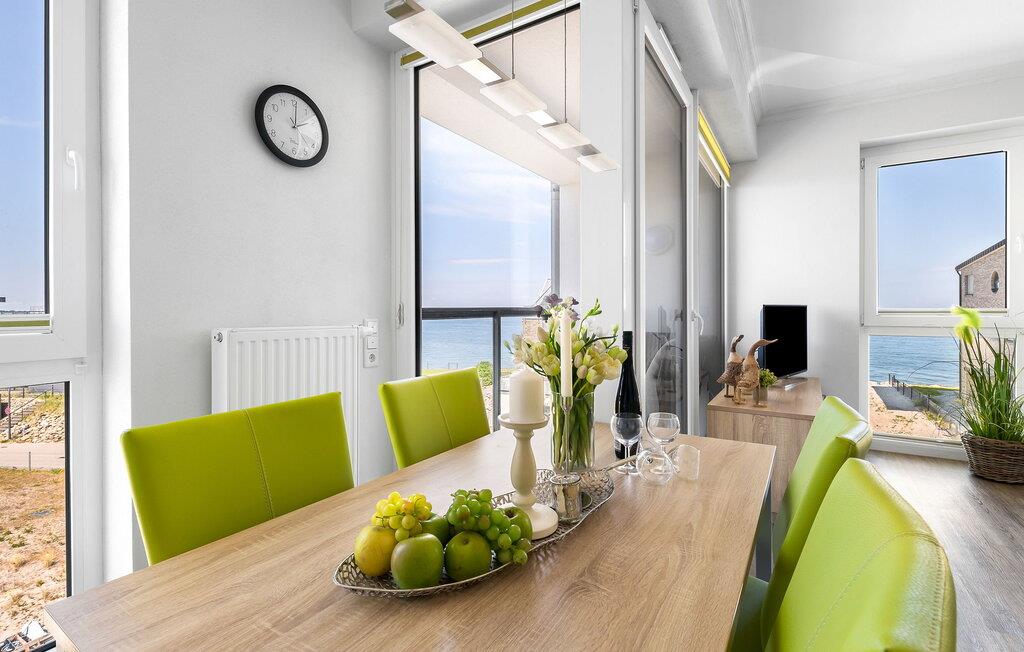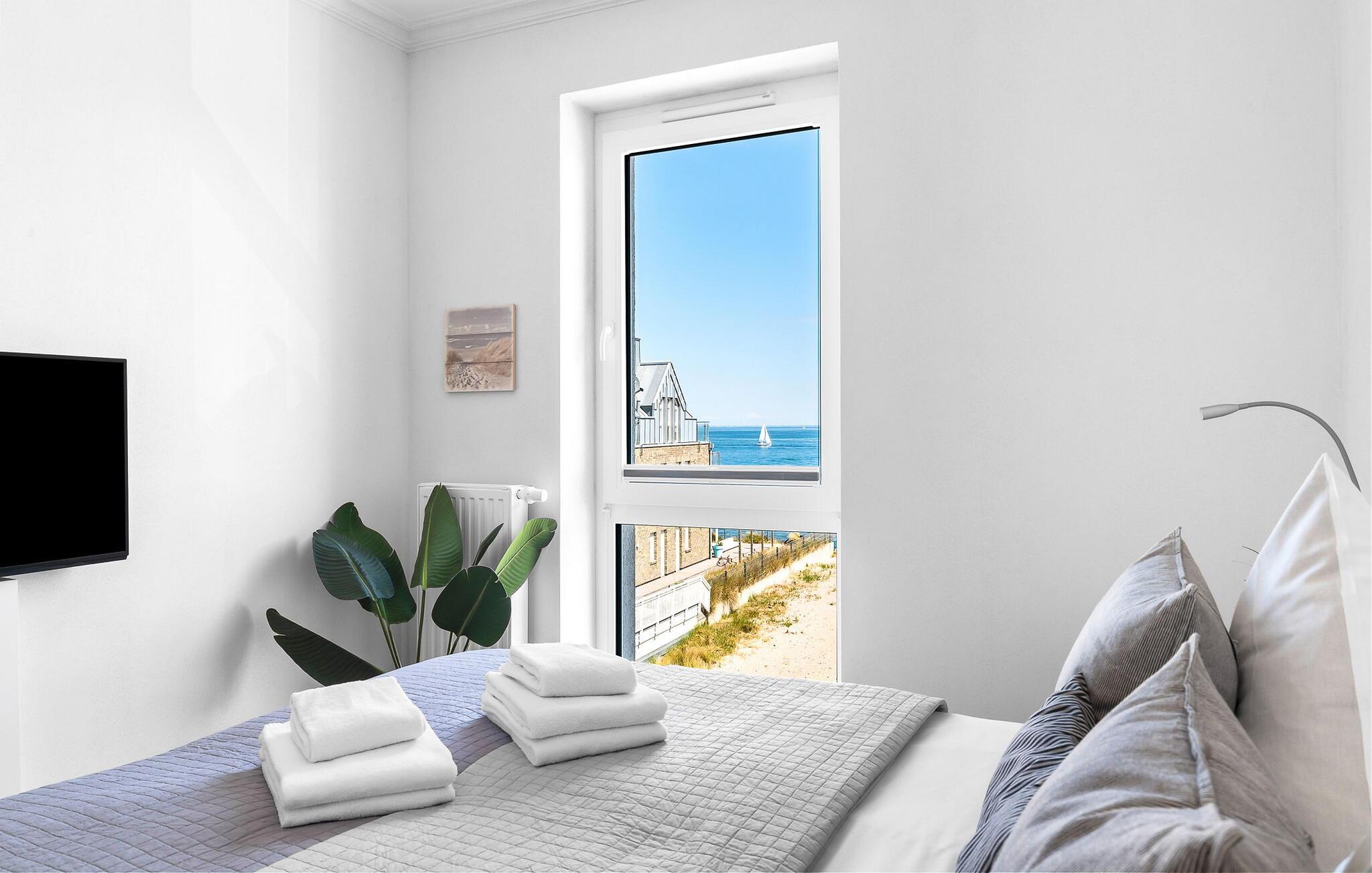 Køkkenet er fuldt udstyret og omfatter opvaskemaskine og mikroovn. En separat spiseplads giver plads til op til fire personer. I kan nyde en vidunderlig udsigt over Østersøen eller havnen fra alle vinduer. For perioden 1. april til 31. oktober. I har jeres egen gratis strandstol ved ORO-badebugten.