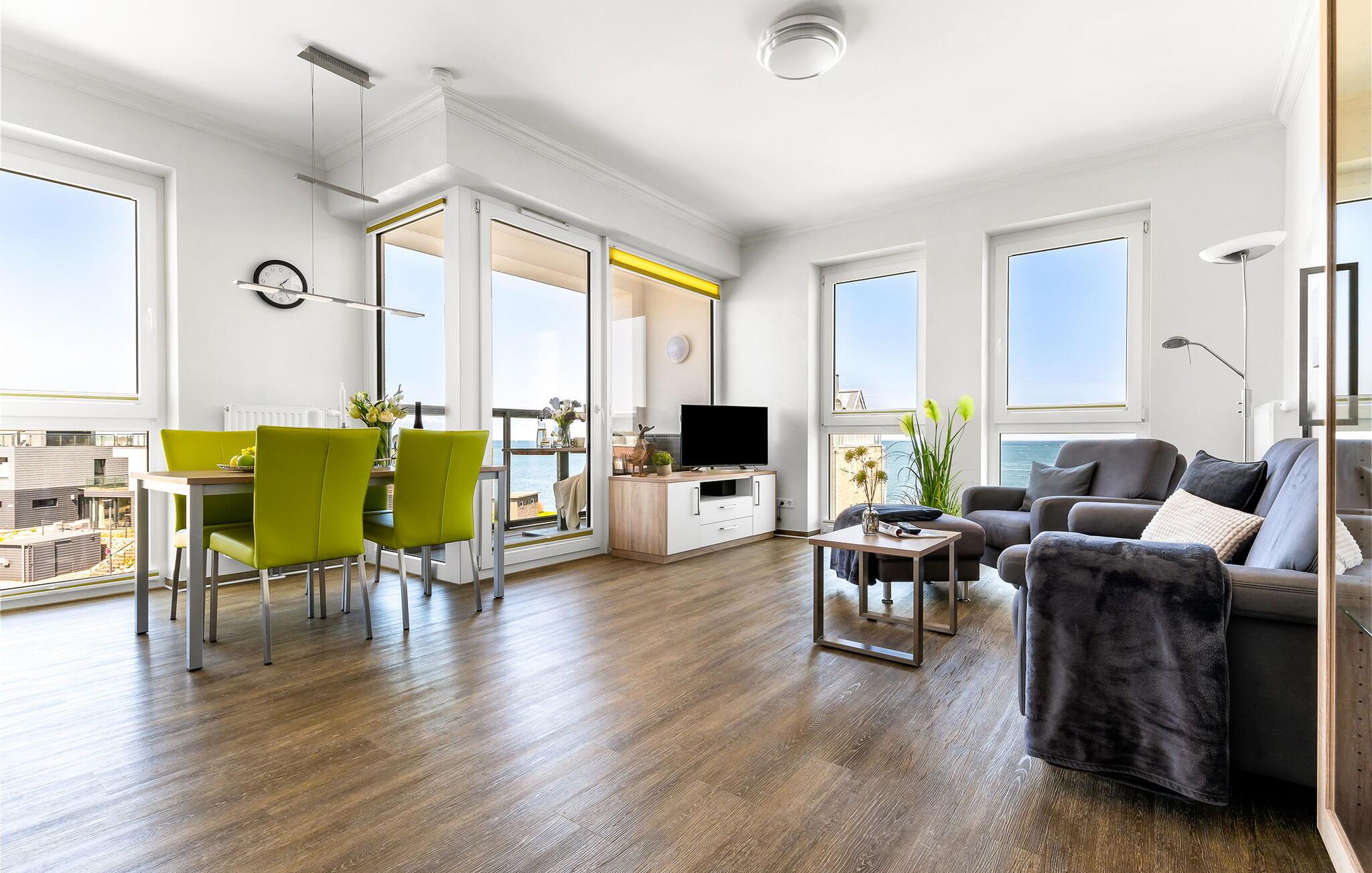 Denne ferielejlighed byder på alt hvad I behøver til en afslappende ferie ved Østersøen. Denne bolig inkluderer også en underjordisk parkeringsplads og en cykelkælder med opladningsfaciliteter til e-cykler. Der er også et fælles vaskerum med vaskemaskine og tørretumbler (via møntautomat) til jeres rådighed.