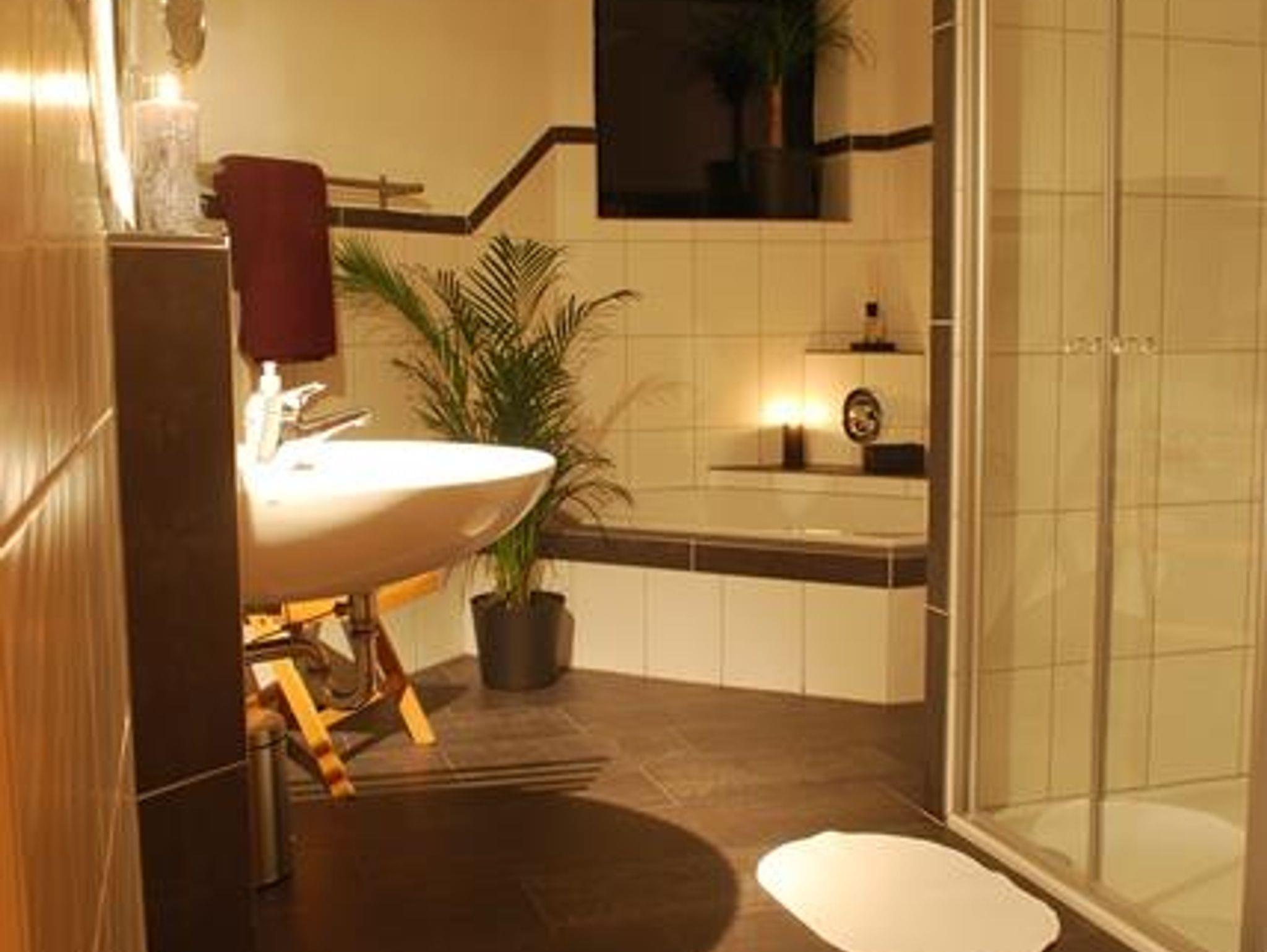· großes Bad mit Dusche und Badewanne (Haartrockner, Hand- und Badetücher vorh.)