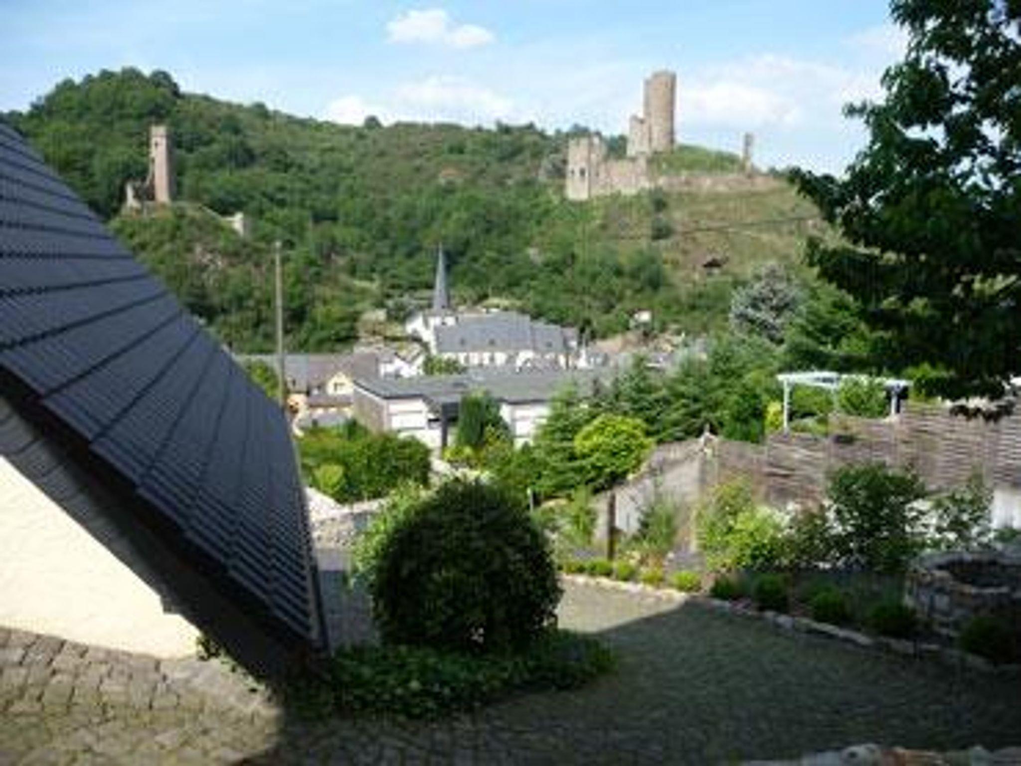 Komfort-Ferienwohnung (großer Wohn- und Essraum, Doppelschlafzimmer und großes Bad mit Dusche und Badewanne) mitten in der Natur und dennoch in greifbarer Nähe zur Fachwerkperle Monreal mit wunderschönem Blick auf die Burgen und den Ortskern. Lauschige Plätze im separatem Gästegarten laden zum Entspannen ein.