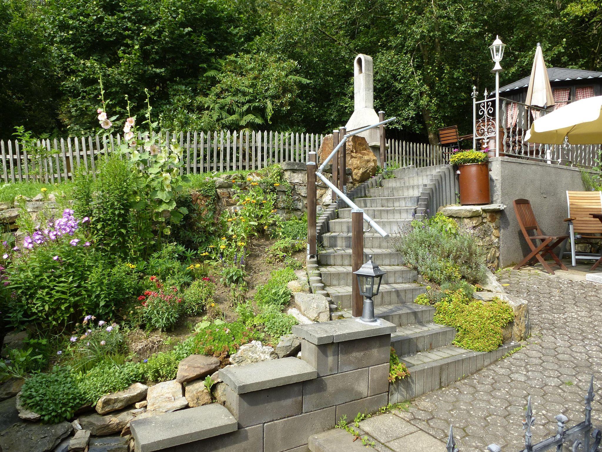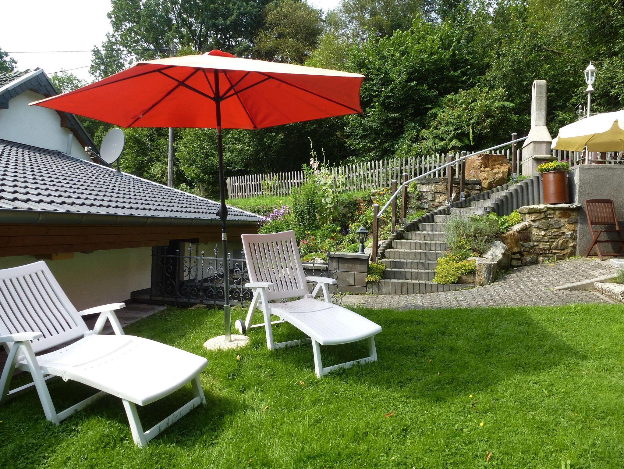Beide Ferienwohnungen befinden sich im gleichen Haus, links die Wohnung Brettbaum und rechts Wohnung Kirmessief, jeweils mit eigenem Eingang. Die jeweiligen Außenbereiche befinden sich unmittelbar neben den Wohnungen.