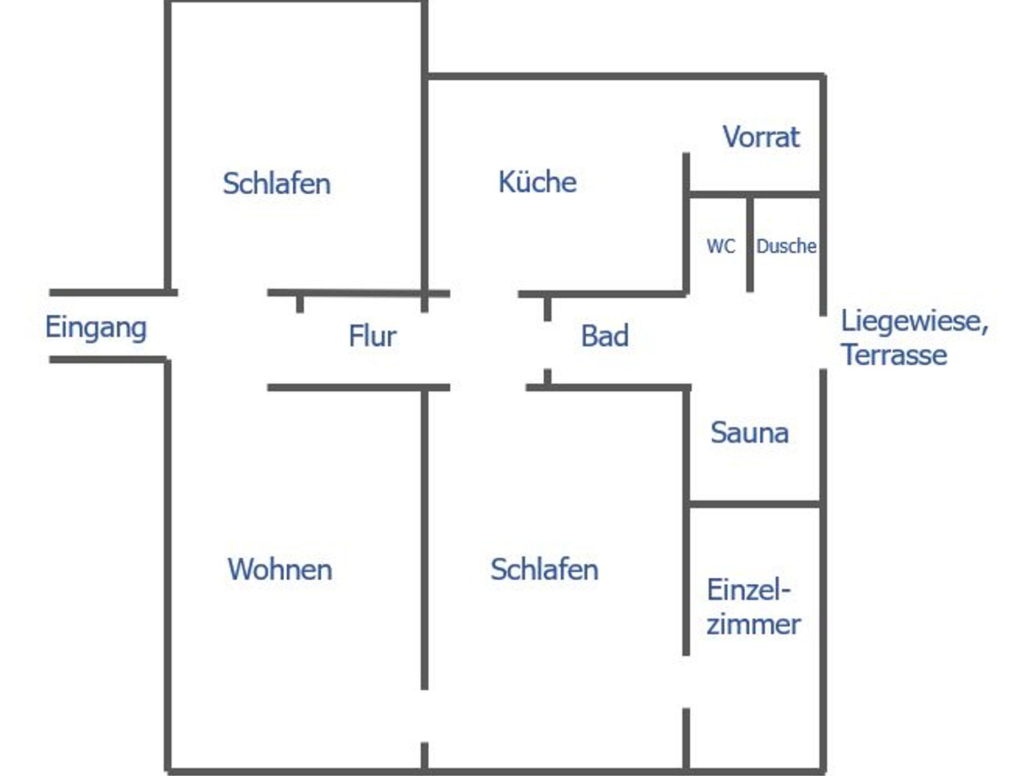Die eigene Terrasse mit Grill sowie die großzügige Liegewiese laden zum Verweilen und genießen ein. Besonders die integrierte Sauna garantiert Entspannung und Wohlbefinden.