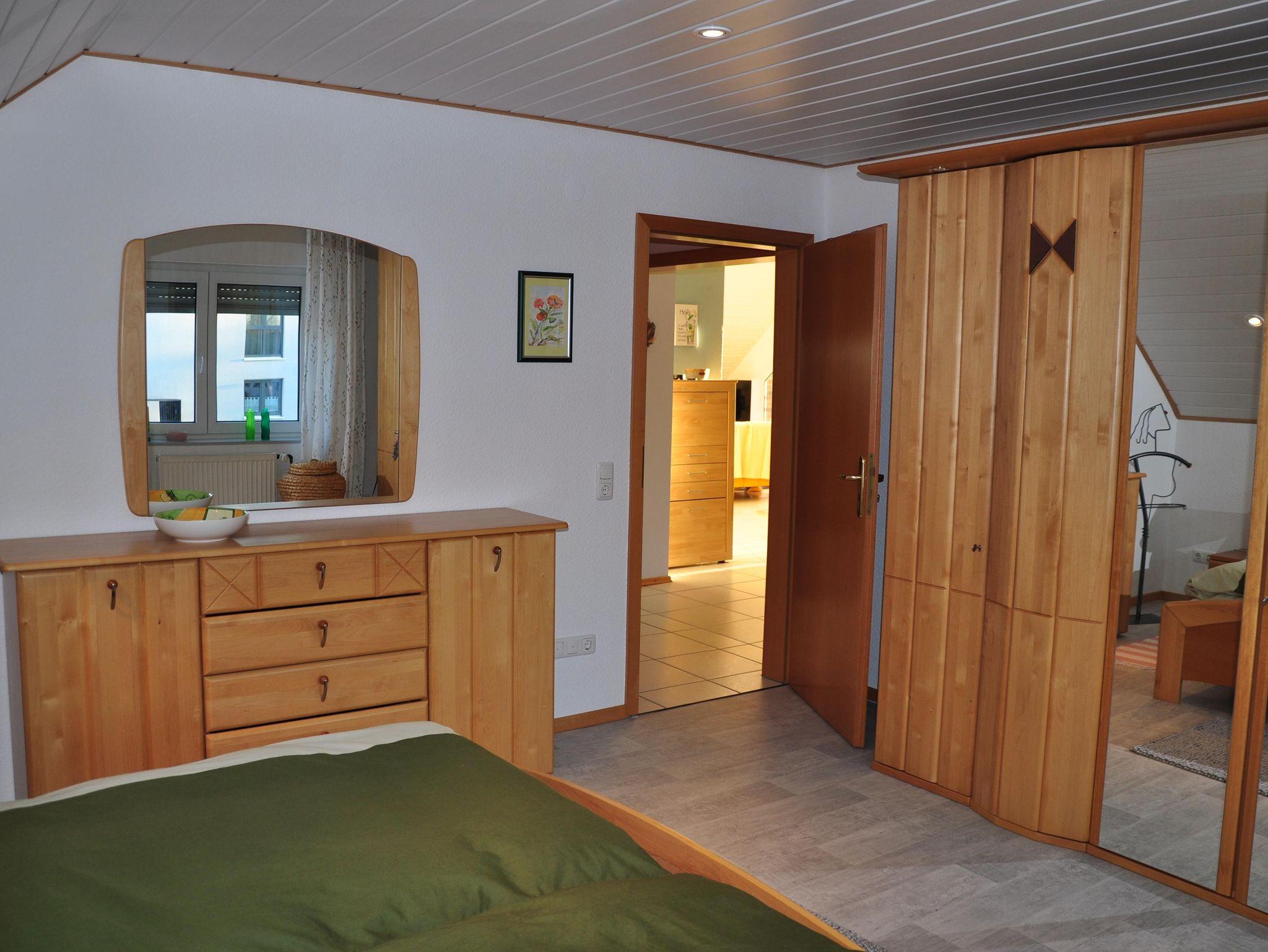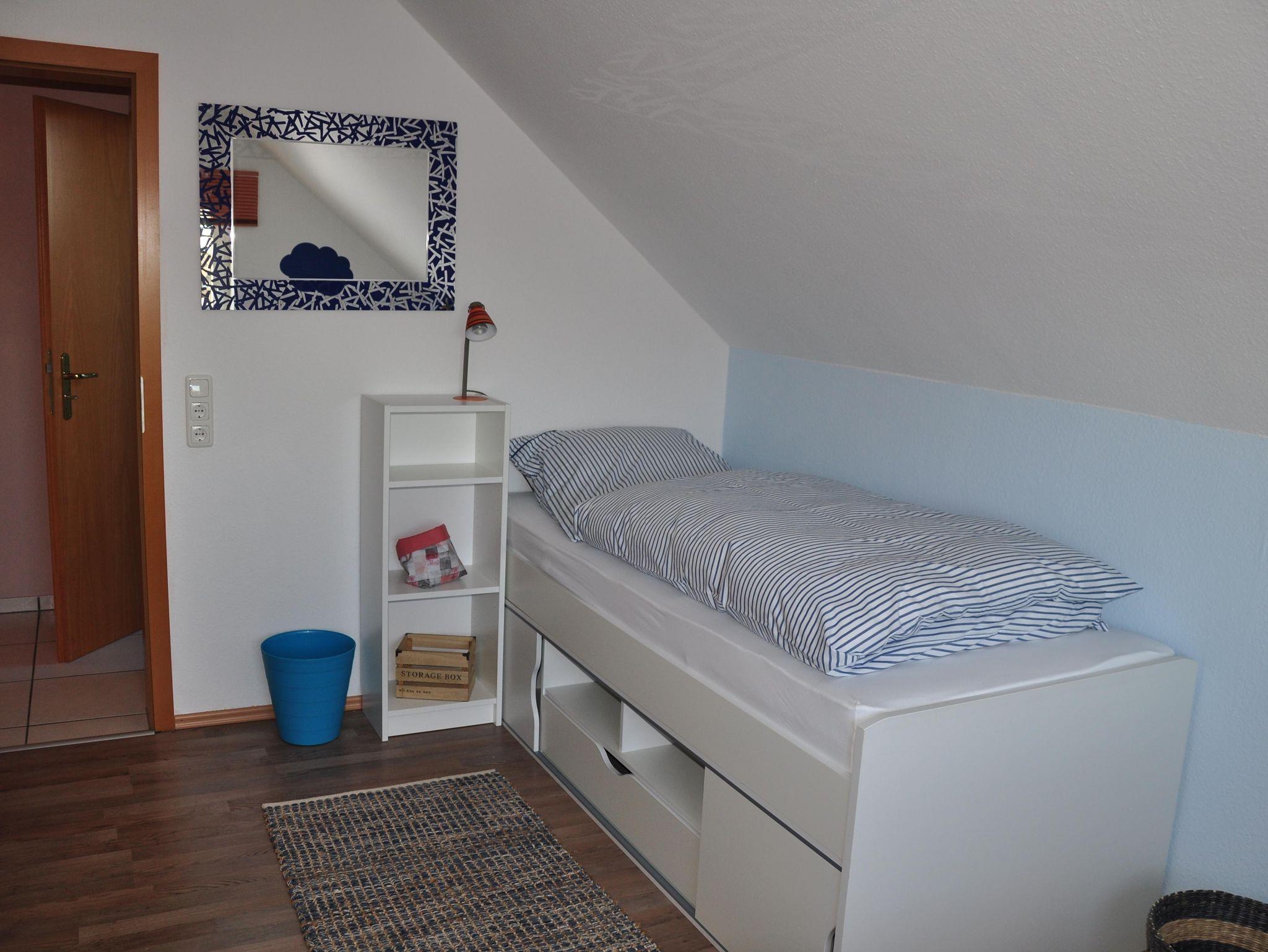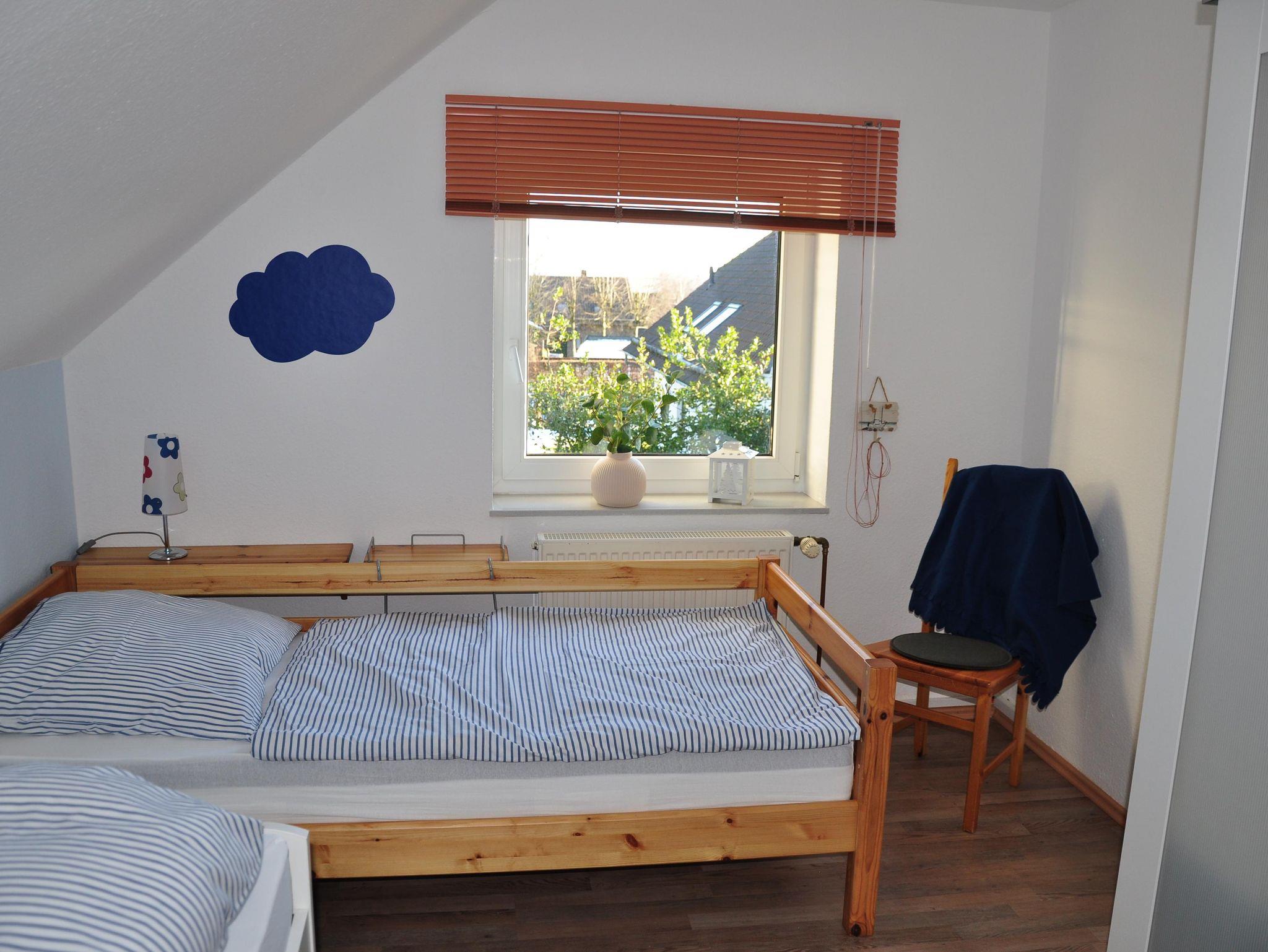 Ein Schlafzimmer ist mit einem einem Doppelbett (180x200) ausgestattet und ein weiteres Zimmer ist mit zwei Einzelbetten (90x200) ausgestattet.