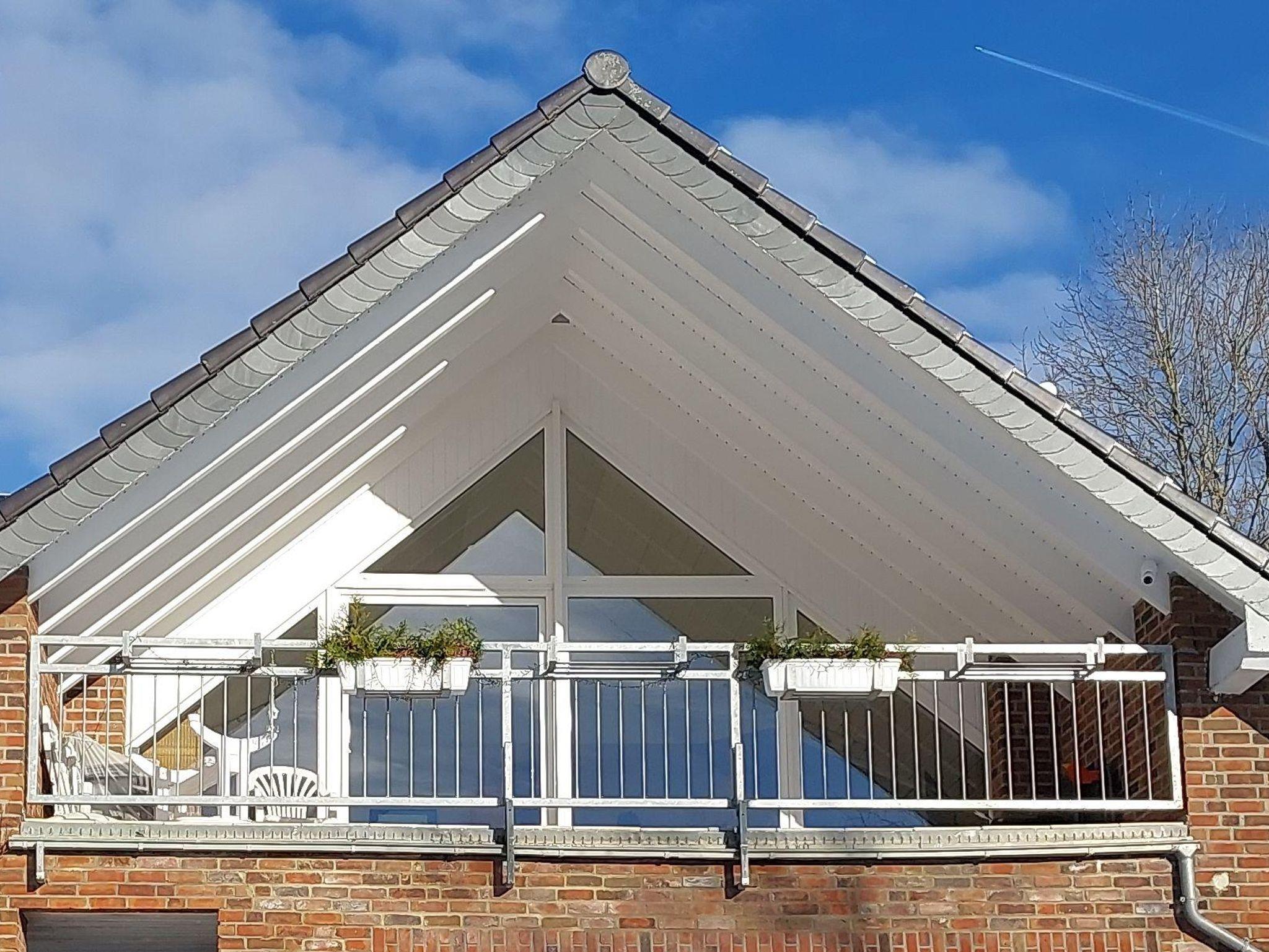 • Balkon mit Gartenmöbeln und Sonnenschirm