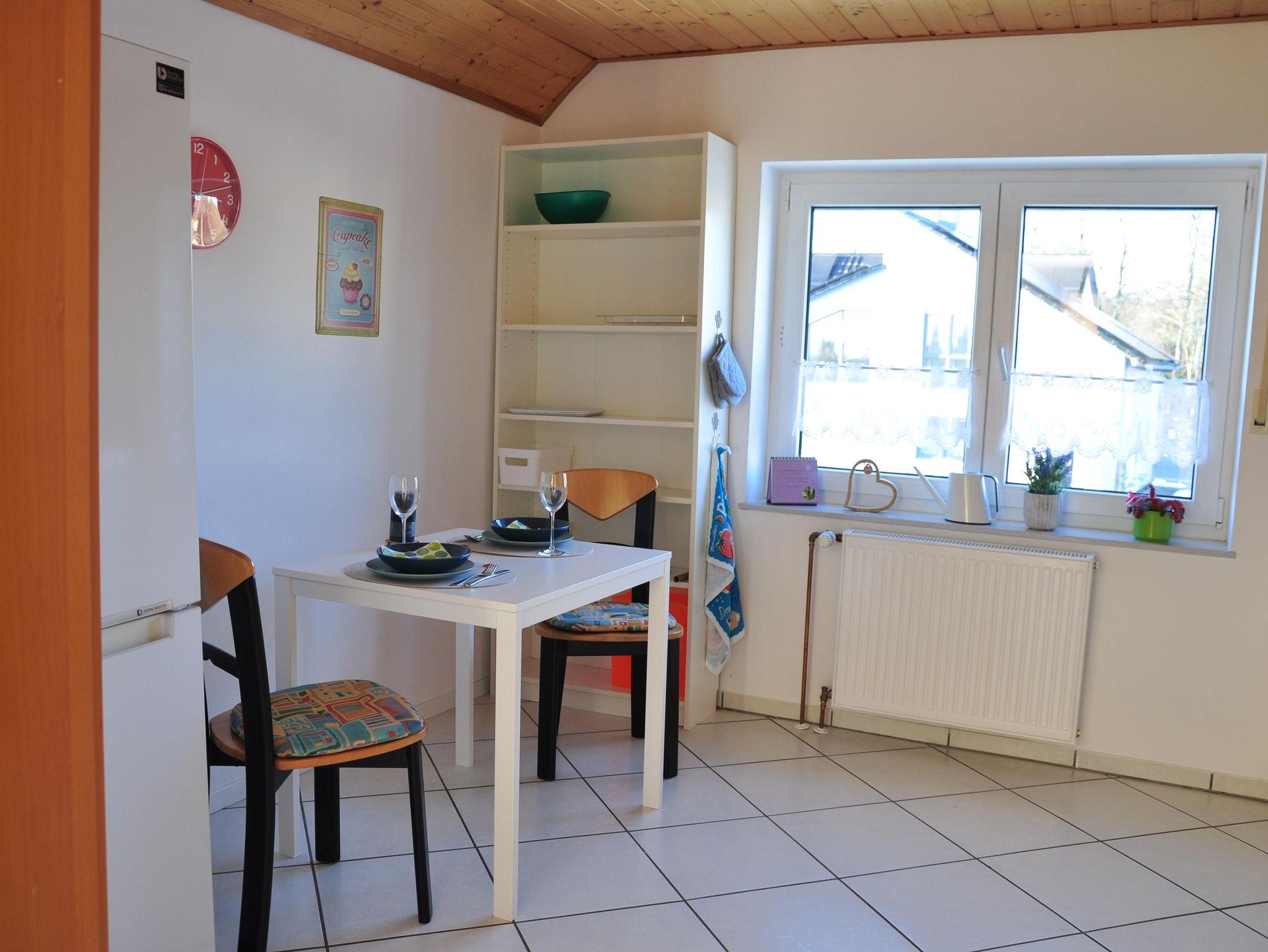• Küche mit Essbereich, Spülmaschine, Backofen, Ceran-Kochfeld,
