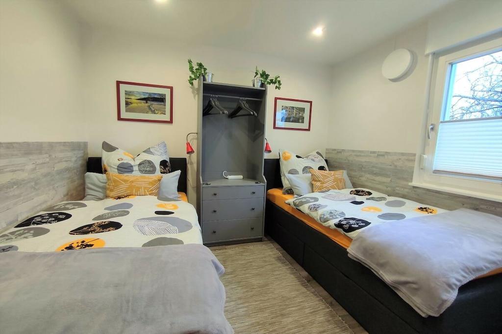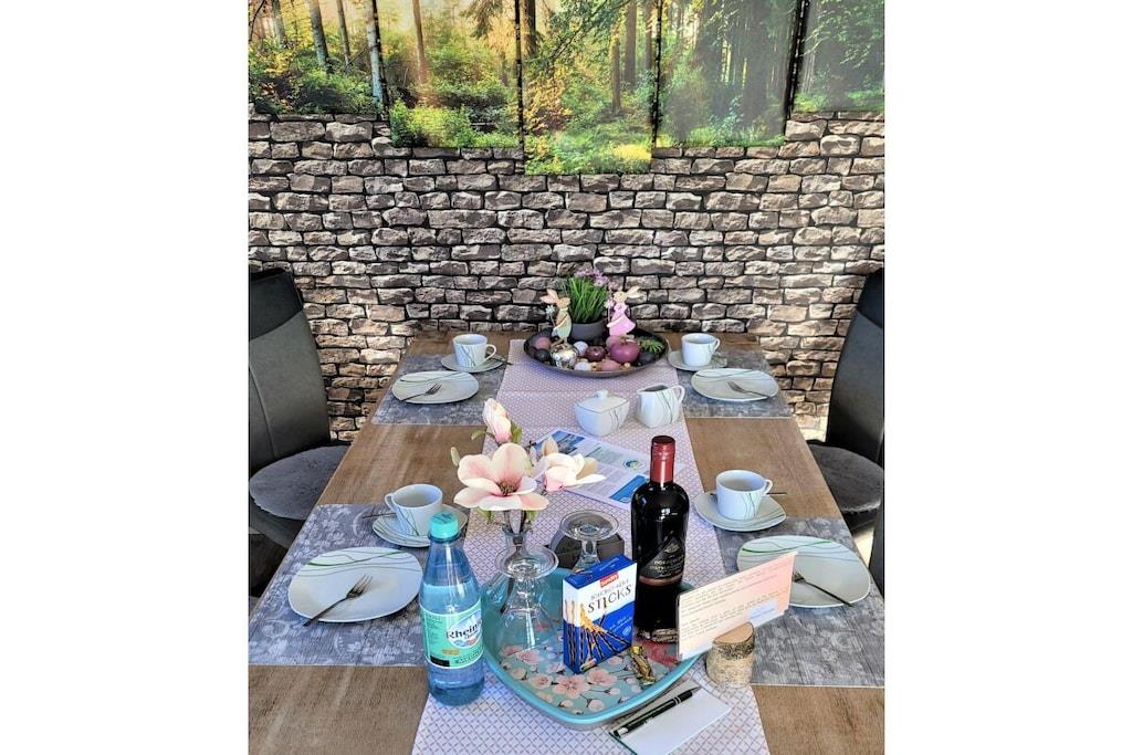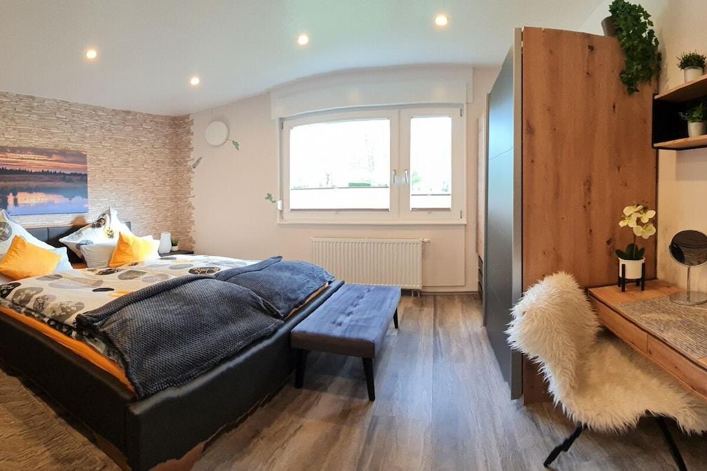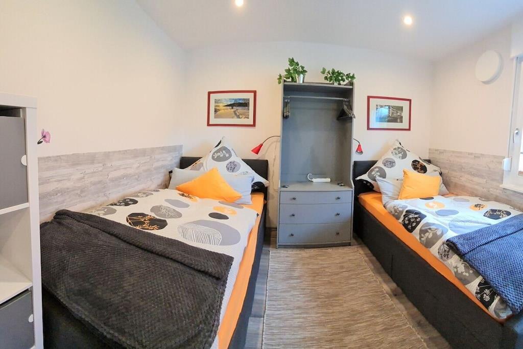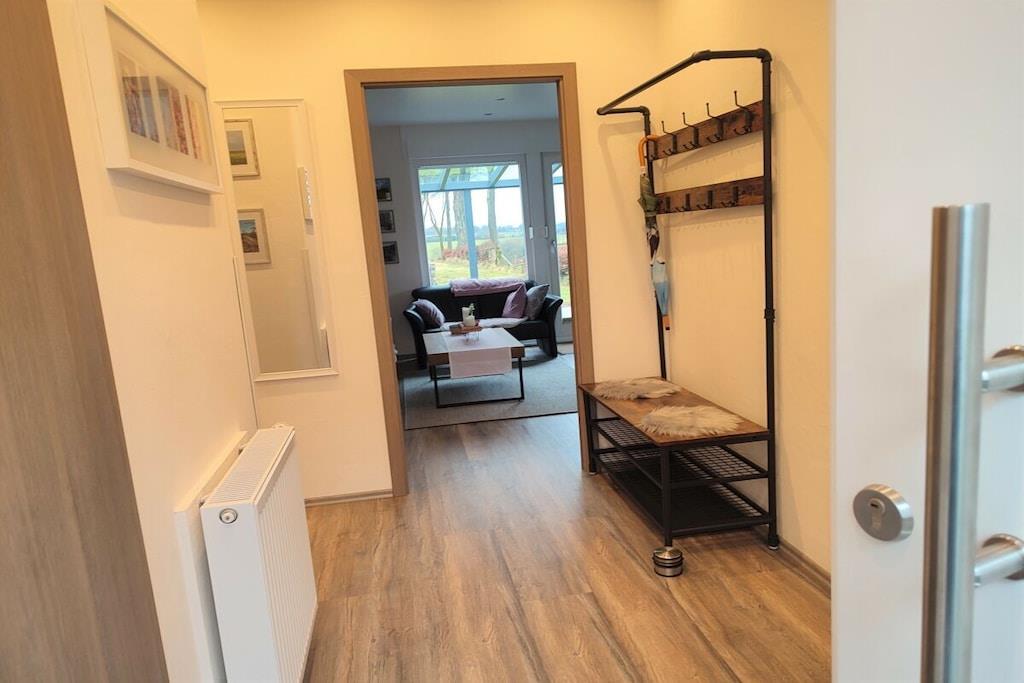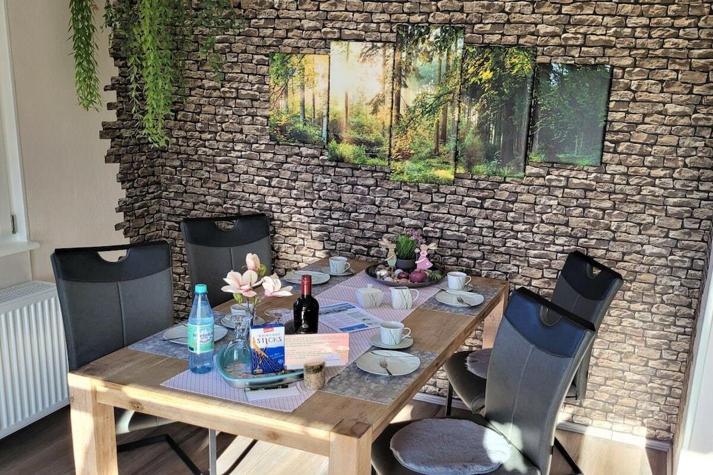 In unserem komplett modernisierten und liebevoll, sowie gemütlich eingerichteten Ferienhaus, werden Sie sich auf 70m² Wohnfläche mit bis zu 4 Personen sehr wohl fühlen. Das große Gartengrundstück (Wiesenfläche) von ca. 2000m² und die überdachte Terrasse 15m² mit einer traumhaften Aussicht ins Grüne, sind zu jeder Jahreszeit ein Ort zum Entspannen. Das Wohnzimmer mit direktem Zugang zur Terrasse, bietet neben einem Essbereich für 4 Personen, eine Ledercouchgarnitur und SAT-TV. In der Küche bleiben nahezu keine Wünsche offen. Um Ihren Aufenthalt so angenehm wie möglich zu gestalten , stehen eine Vielzahl von Küchengeräten und Einrichtungsgegenständen zur Verfügung. Neben den beiden liebevoll gestalteten und eingerichteten Schlafräumen mit einem komfortablen Doppelbett bzw. zwei gemütlichen Einzelbetten, rundet das modernisierte Badezimmer mit einer großen bodengleichen Dusche die Annehmlichkeiten Ihres Feriendomizils ab. Hunde erlaubt, max. 2 Hunde, müssen vorab gebucht und angemeldet werden. Übernachtungsgebühr pro Nacht und Hund: 10,-EURO