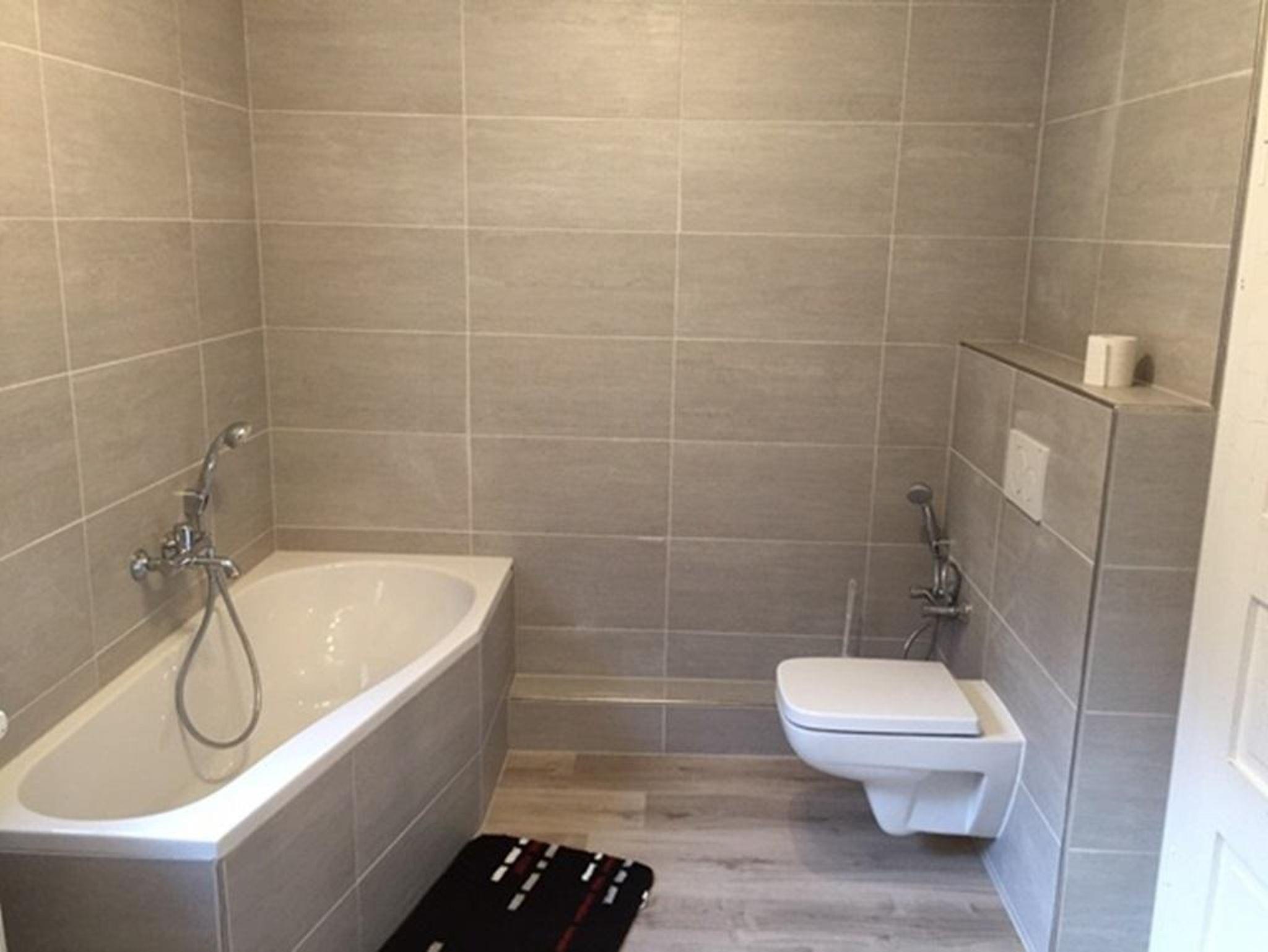• 1 Bad mit Dusche, Badewanne, Waschbecken und WC (2. OG)