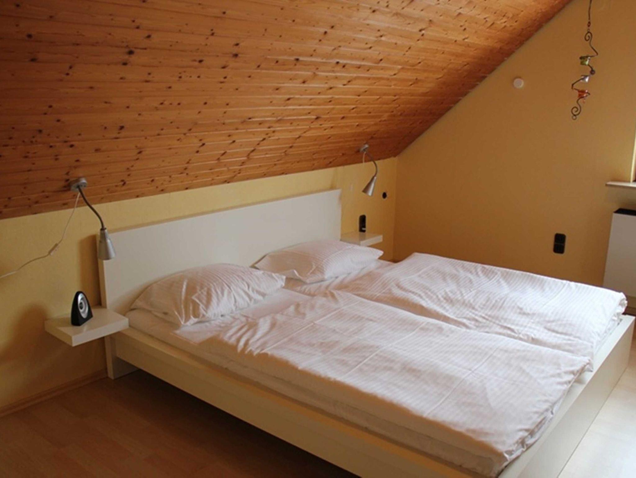 Es gibt drei Schlafzimmer: Zwei mit je einem Doppelbett und ein weiteres Zimmer mit zwei Einzelbetten (Durchgangszimmer zu einem der beiden Doppelzimmer). Auf der Galerie der oberen Etage kann bei Bedarf eine Person auf einem Zusatzbett schlafen.