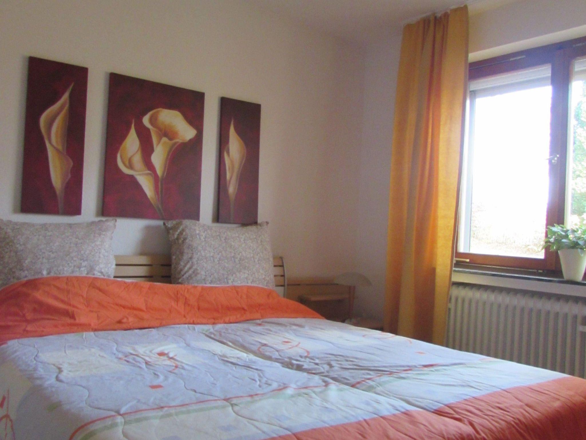 Ferienwohnung, voll ausgestattet mit 4 Schlafplätzen (1 Doppelbett, 2 Einzelbetten), Wohnzimmer, Esszimmer, Küche, Bad u. WC, 2 Schlafzimmer, Balkon/Terrasse, Gartengenutzung
