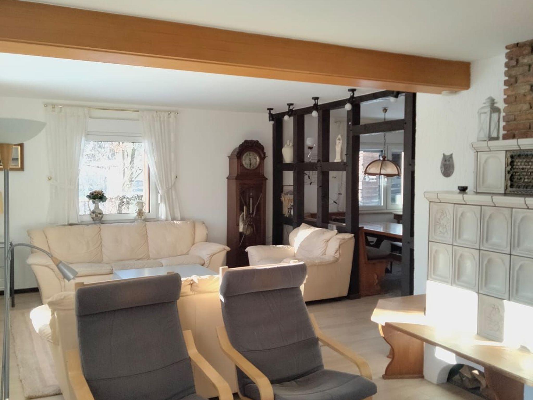 Die ca. 90 qm große Ferienwohnung ist frisch renoviert und befindet sich im Erdgeschoss und verfügt über einen eigenen Eingang. Mit 2 Doppelschlafzimmern, Diele, Bad, Küche mit Essplatz, sowie großräumigem Wohnraum mit Kachelofen und (Frühstücks-) Balkon bietet die Wohnung Platz für 4 Personen.