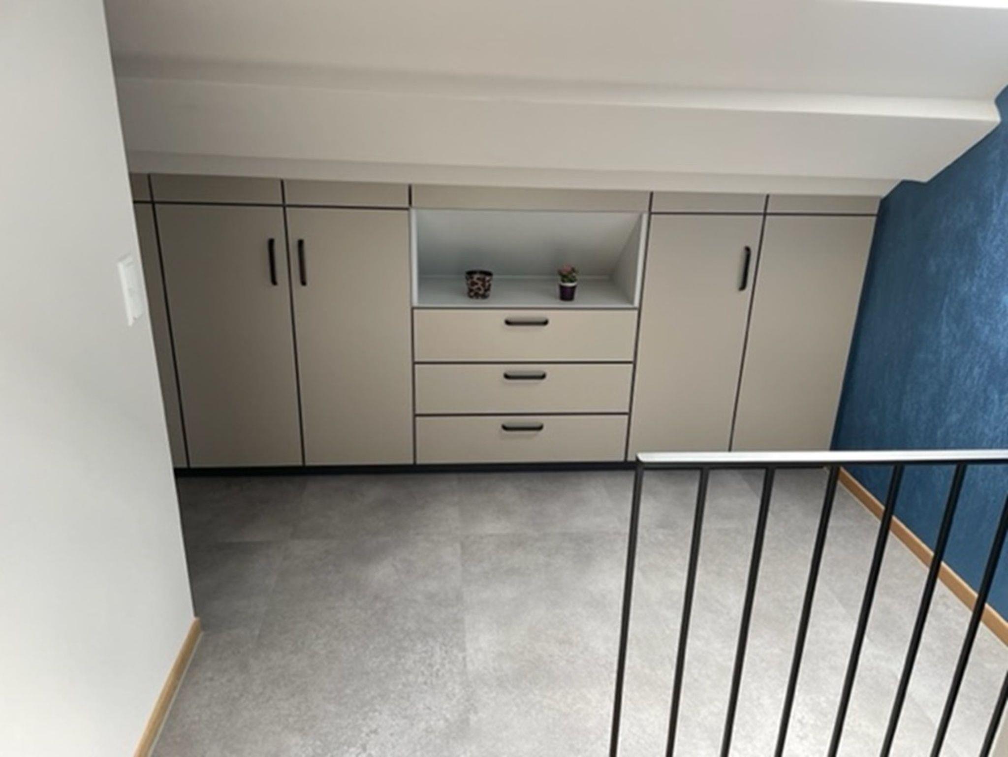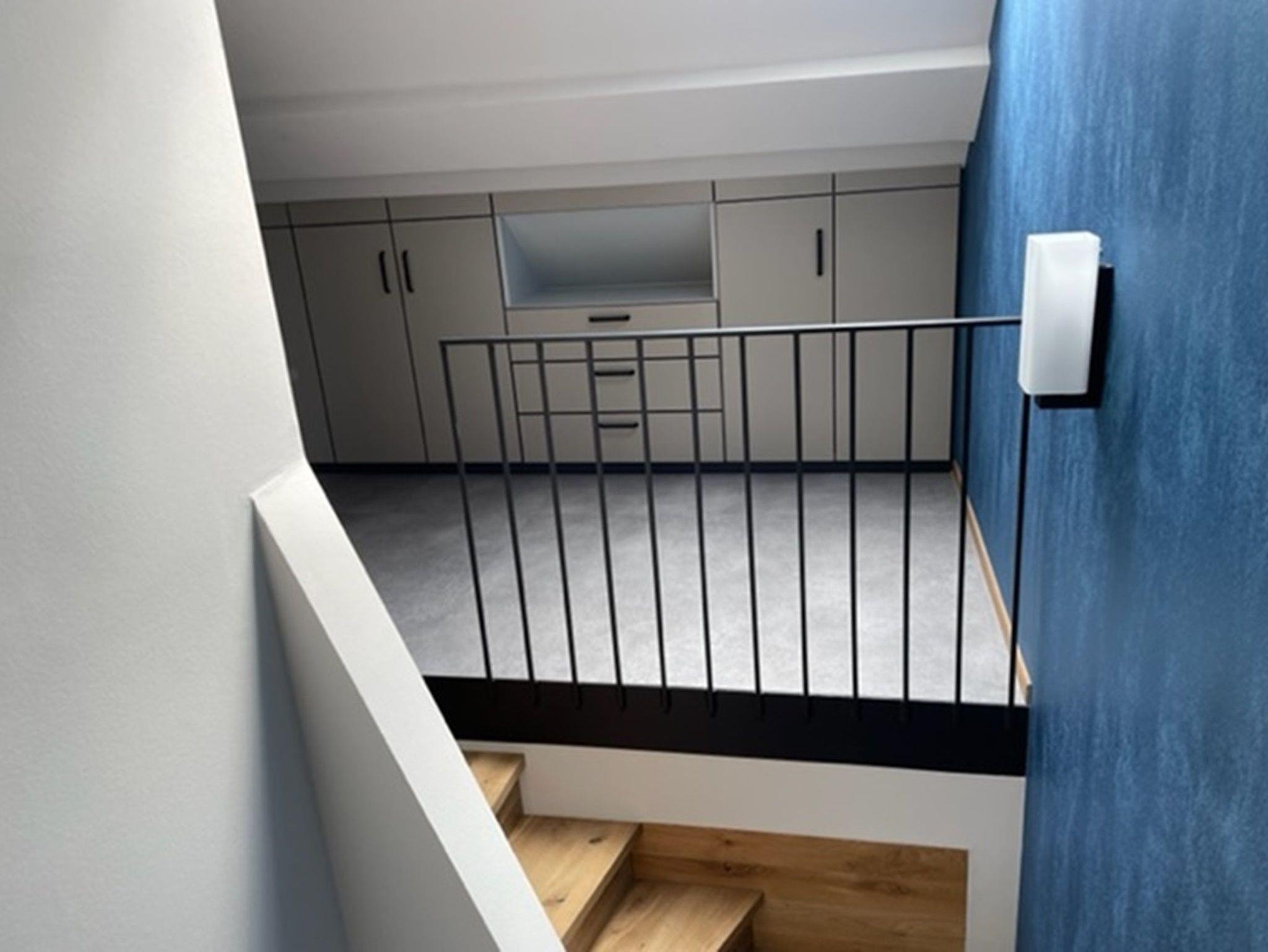 Im Dachgeschoss liegt das Schlafzimmer mit einem Doppelbett und SAT-TV. Die Wandschränke im Flur bieten ausreichend Stauraum für Ihr Gepäck.