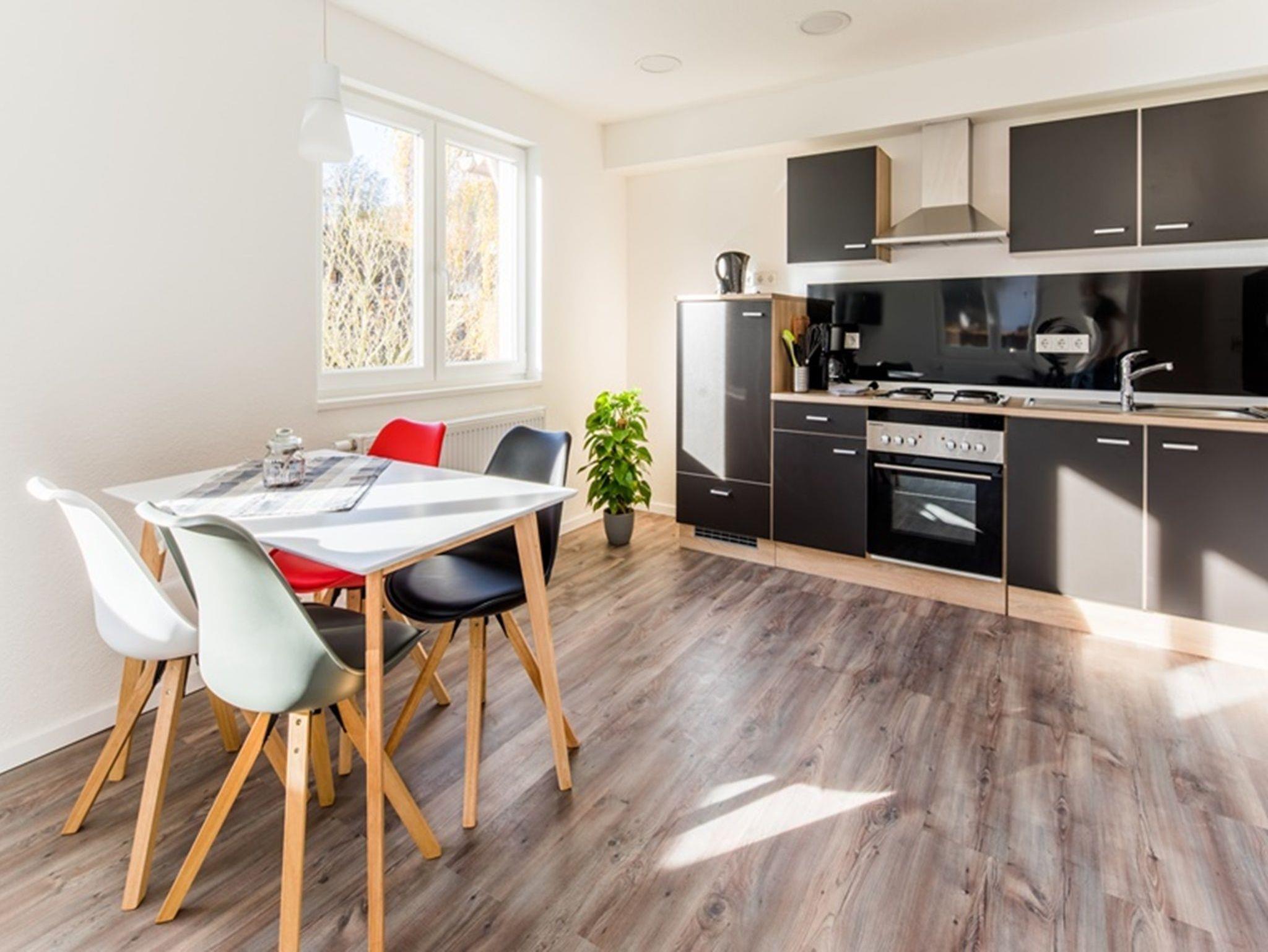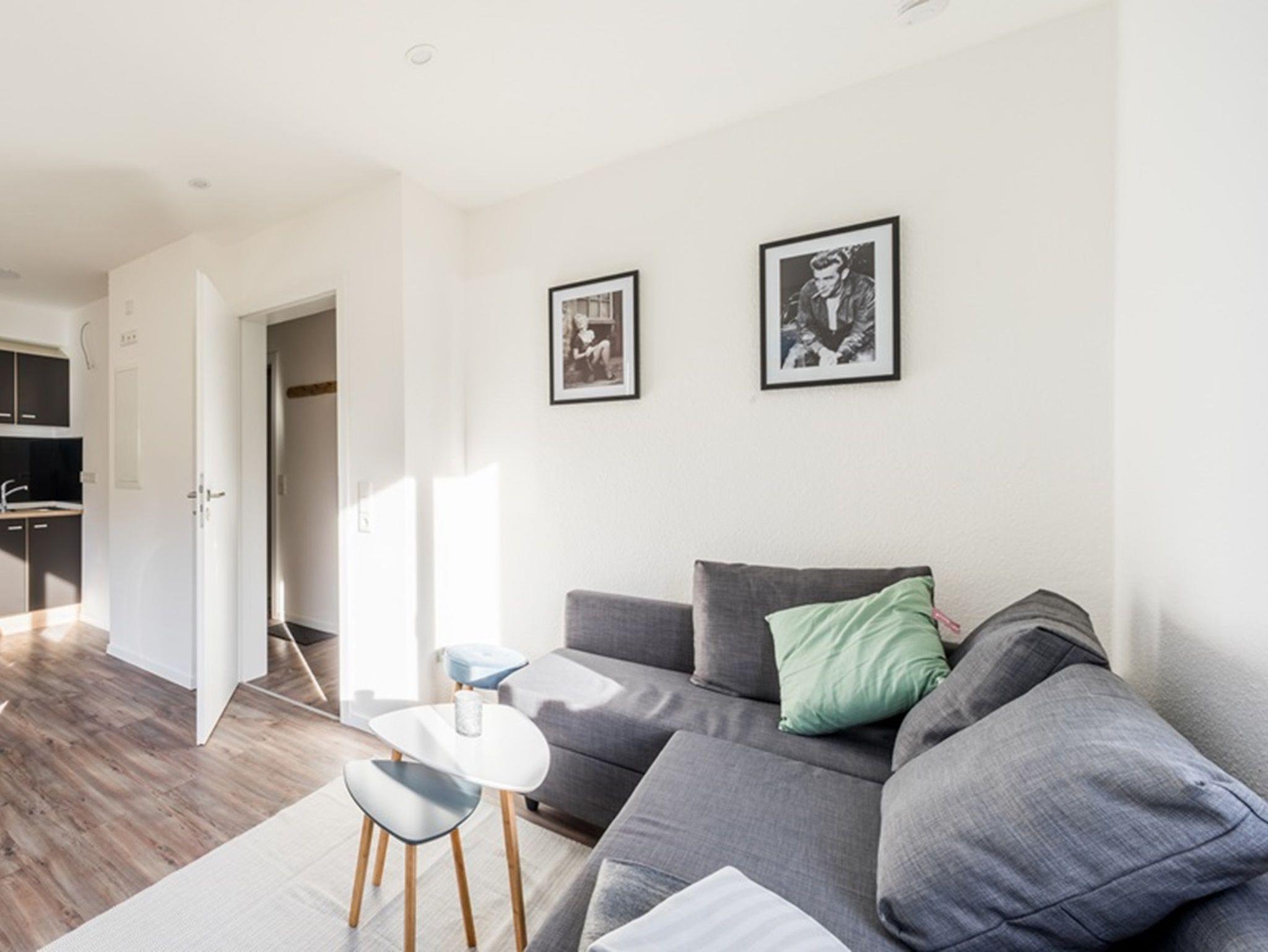 Die Wohnung ist mit einer modernen Küche, Wohnzimmer mit TV, 1 Doppelzimmer und 1 Schlafsofa im Wohnzimmer ausgestattet.