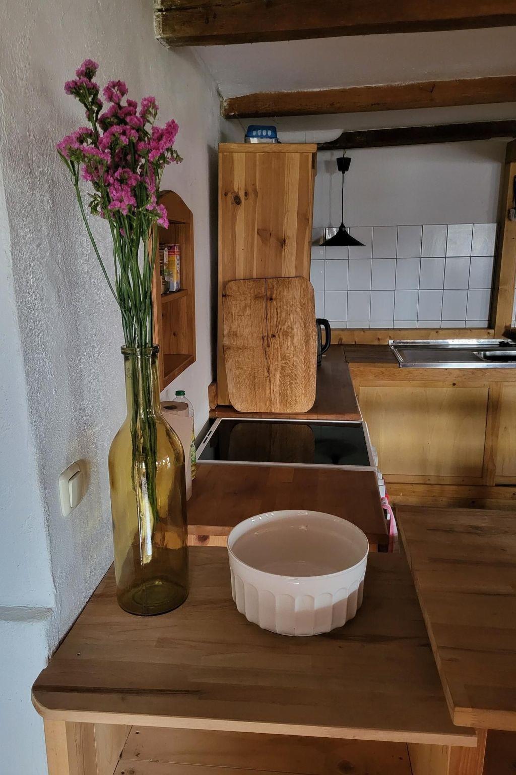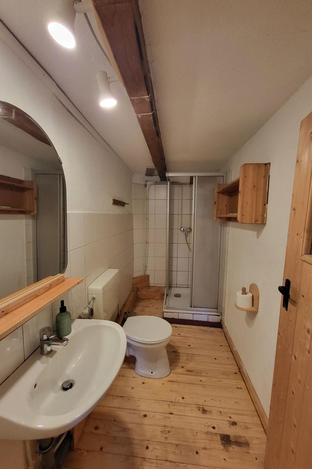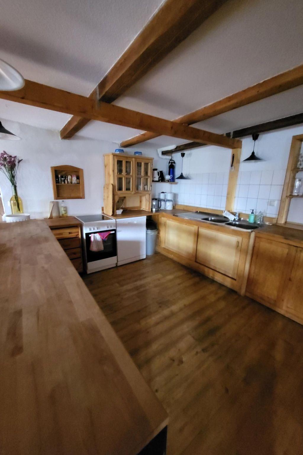A beautiful flat awaits you, rustically furnished in the former Moorhausen farm. You enter your flat via the terrace. In the sunny summer, the doors are open and you can spend a lot of time on the terrace or in the garden. If it gets "uselig" and rainy, the heating and a wood-burning stove have to provide the right warmth. You are welcome to light the stove daily with our wood. We will be happy to instruct you in the art of fireplace firing.