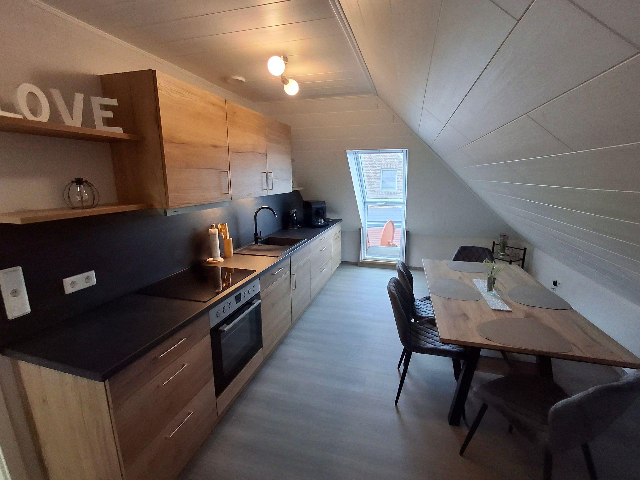 Die Ferienwohnung verfügt über eine Küche mit Essbereich, ein geräumiges Wohnzimmer, Badezimmer mit Dusche/WC und ein Doppelzimmer mit Kinderbett. Zusätzlich ist ein Schlafsofa vorhanden. Bettwäsche und Handtücher sind im Preis inklusive. Ein Parkplatz mit Wallbox befindet sich direkt am Haus.