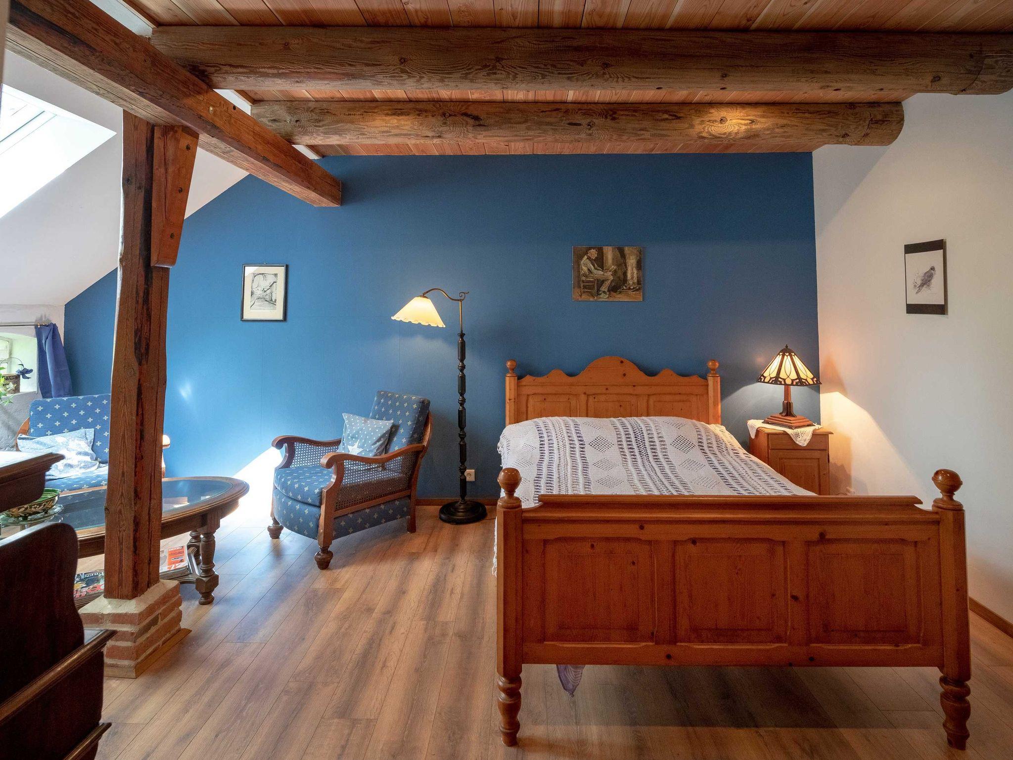 Mit viel Liebe zum Detail eingerichtetes Gästezimmer im Erdgeschoss mit einem Doppelbett. Das Badezimmer ist mit Dusche und WC. In dem Gästezimmer ist eine kleine Pantryküche mit Kaffeemaschine, Wasserkocher und einer Mikrowelle. Außerdem bietet das Gästezimmer eine kleine Sitzecke und Möglichkeiten zum lesen an.