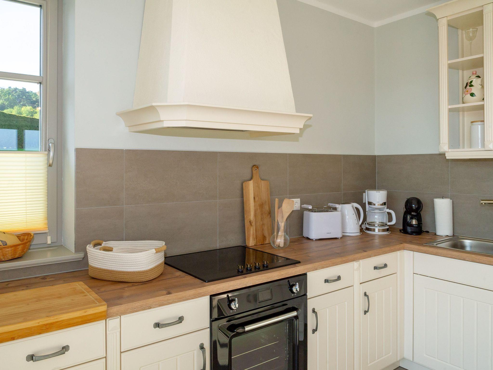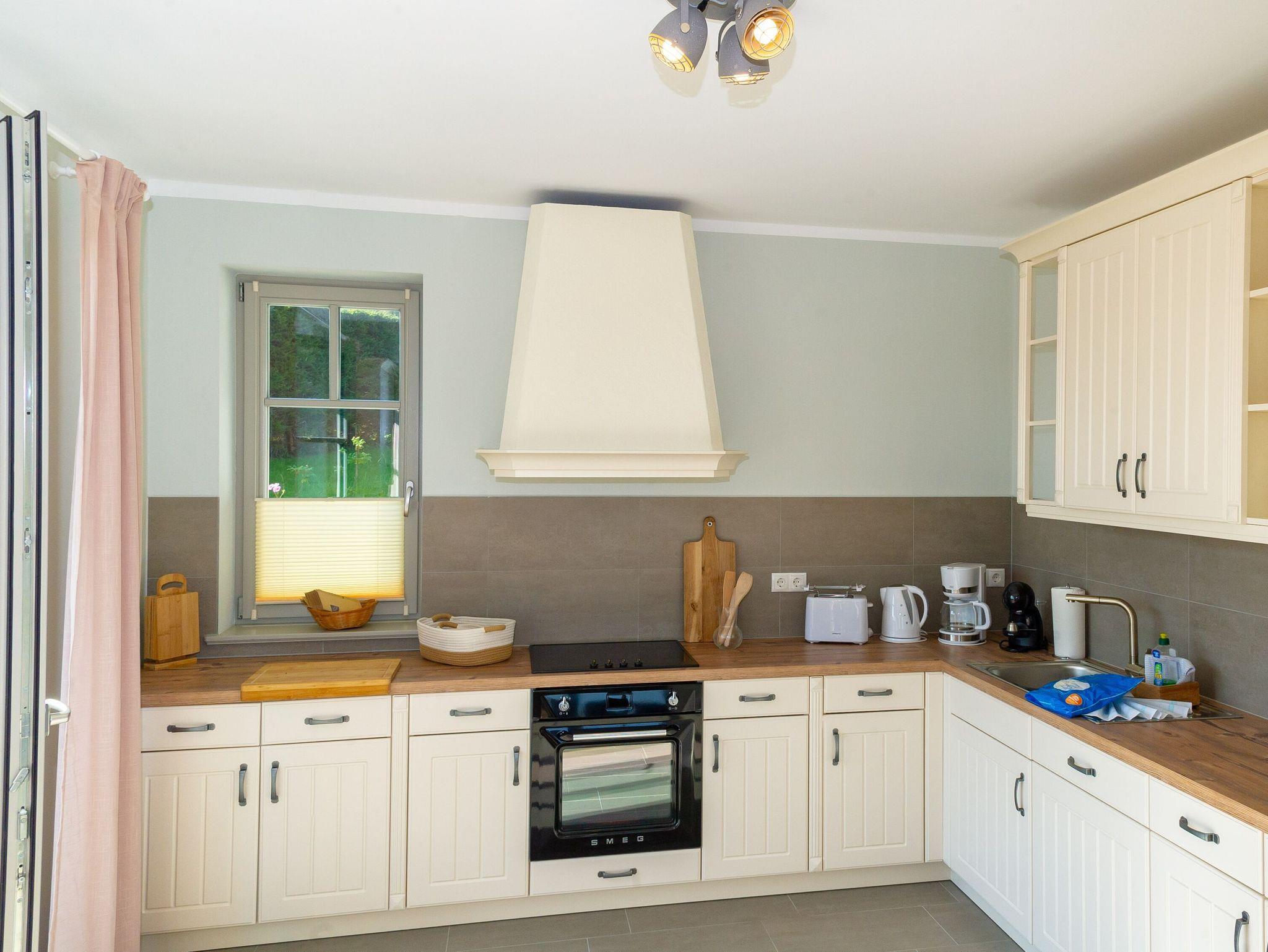 Die geräumige Landhausküche bietet alles, um die ganze Familie nach Herzenslust zu bekochen. Zur umfangreichen Ausstattung zählen u.a. ein 4-Zonen-Ceranherd mit Backofen und Grillfunktion, eine große Kühl-/Gefrierkombi, eine Spülmaschine, eine Mikrowelle, eine Espresso-Kapselmaschine, ein Filterkaffeemaschine sowie Wasserkocher, Toaster und natürlich auch das nötige Koch- und Essgeschirr.