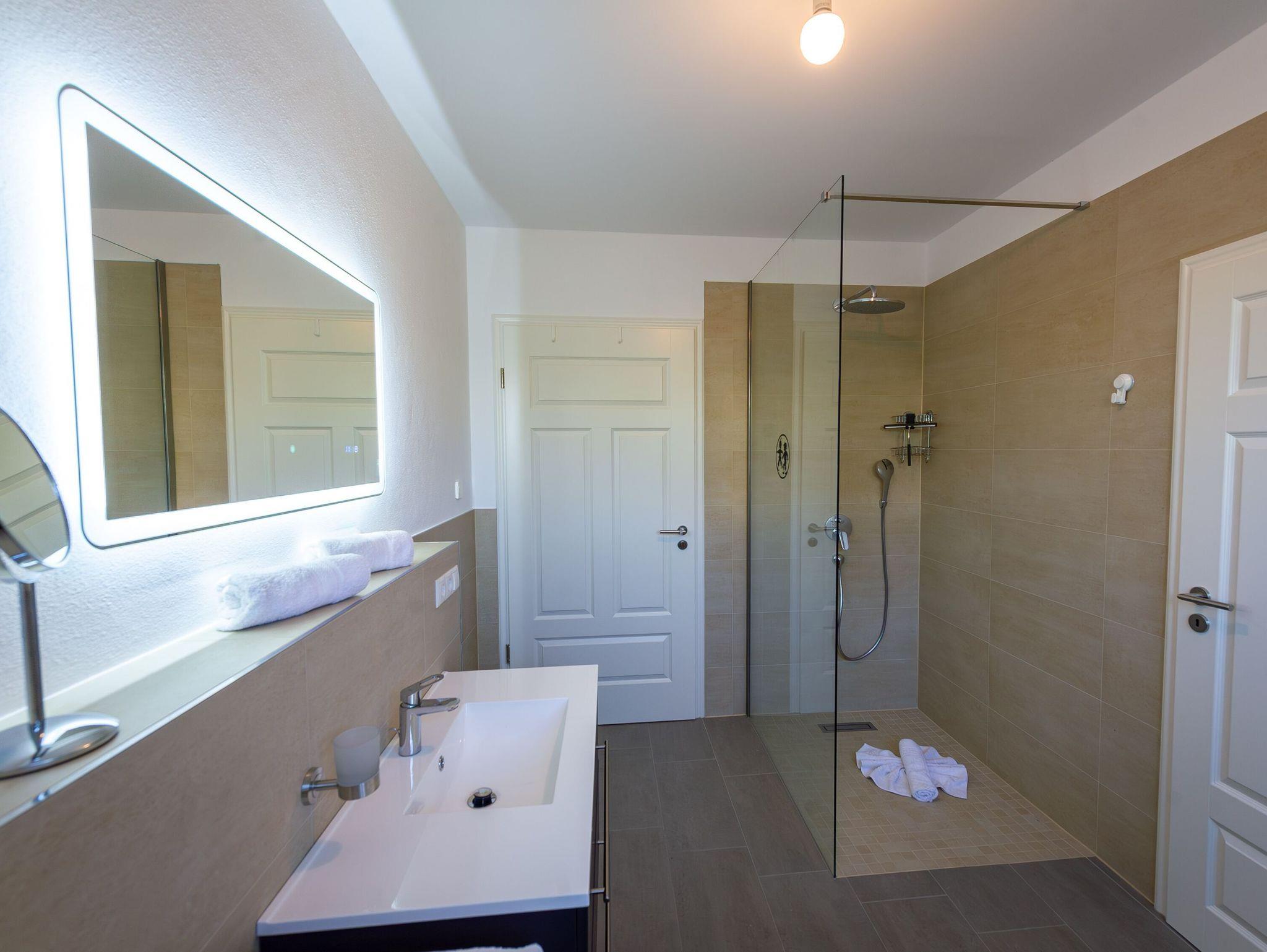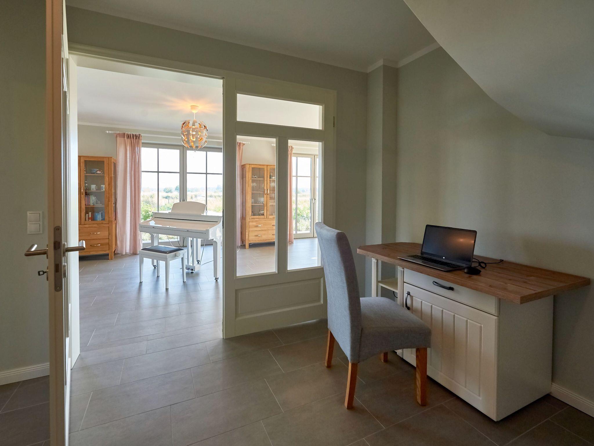 Im Erdgeschoss des Hauses finden Sie darüber hinaus eines der beiden großzügigen Duschbäder, den Hauswirtschaftsraum mit Waschmaschine und Trockner sowie ein Plätzchen zum Arbeiten, falls Sie nicht auf Ihren Laptop verzichten können. W-LAN ist selbstverständlich kostenfrei verfügbar.