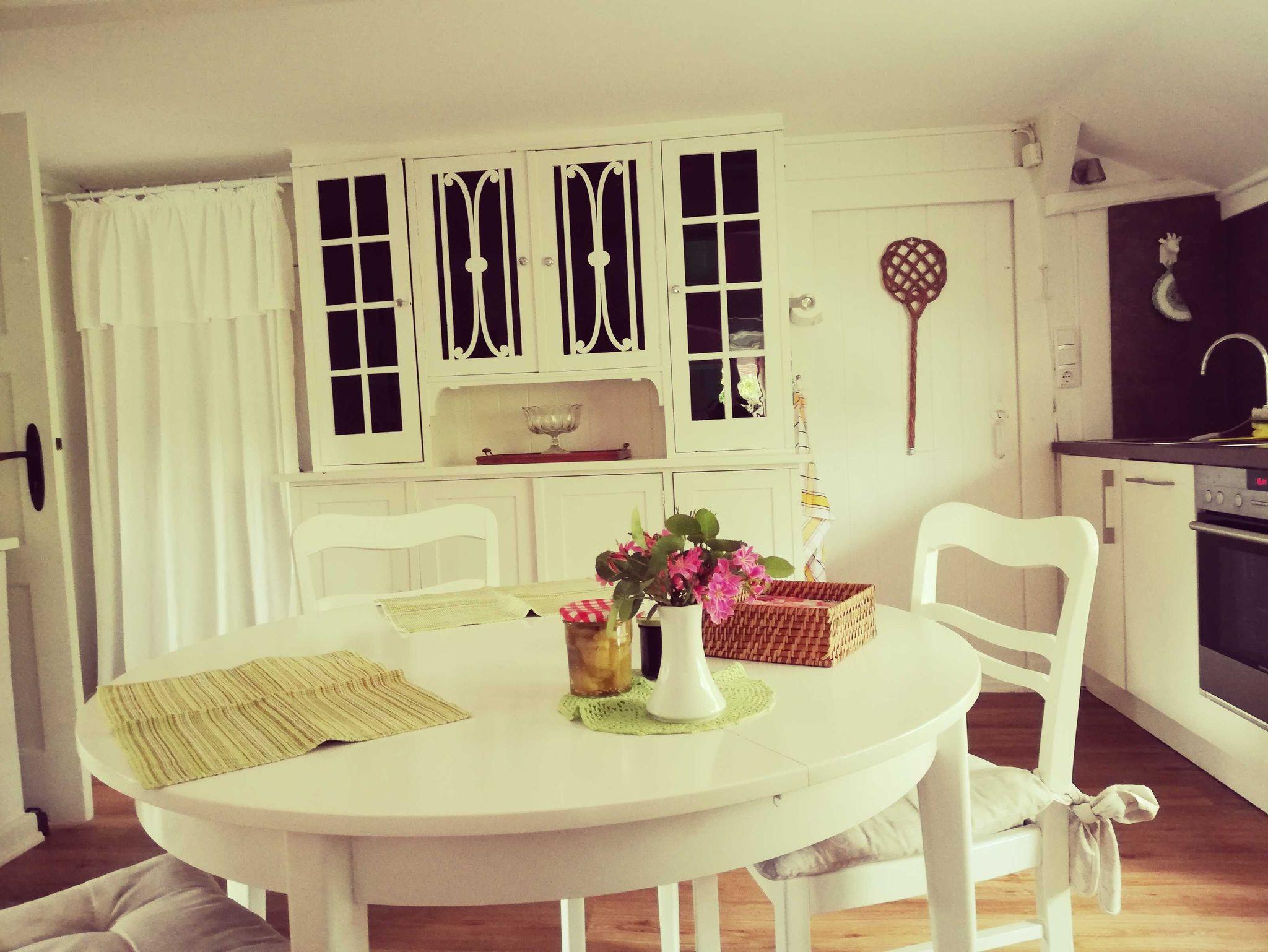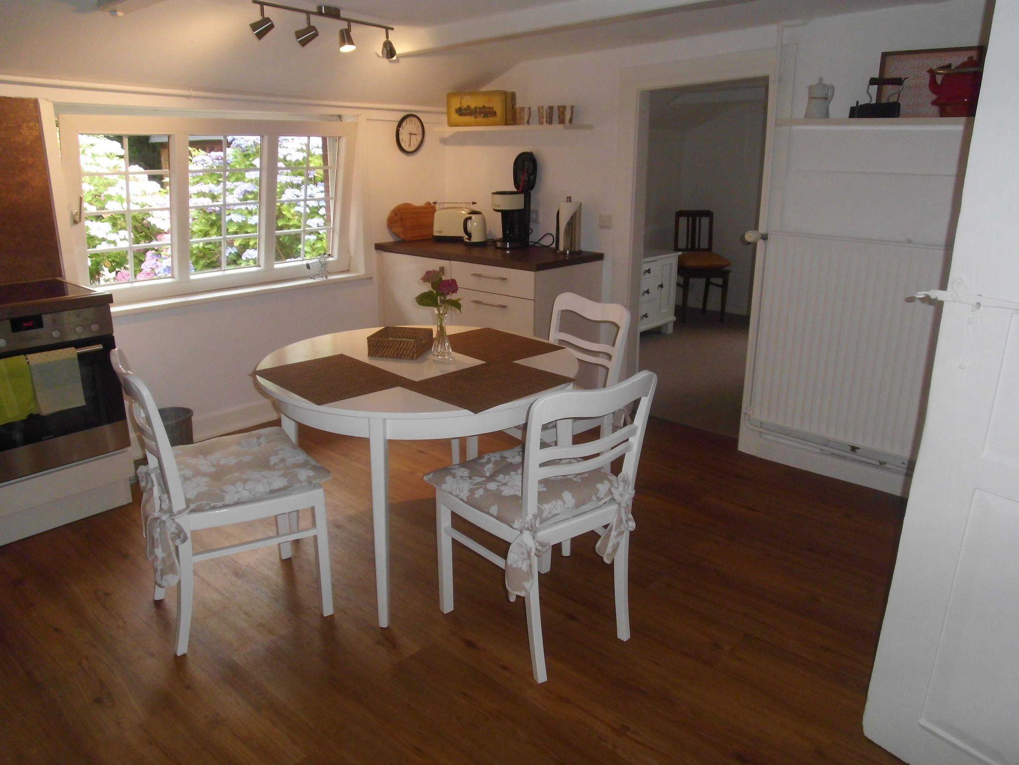 • eine separate Küche mit Esstisch und 3 Stühlen, Kühlschrank mit Gefriermöglichkeit, Spülmaschine, Kaffeemaschine, Wasserkocher, Toaster und Geschirr für den täglichen Gebrauch.
