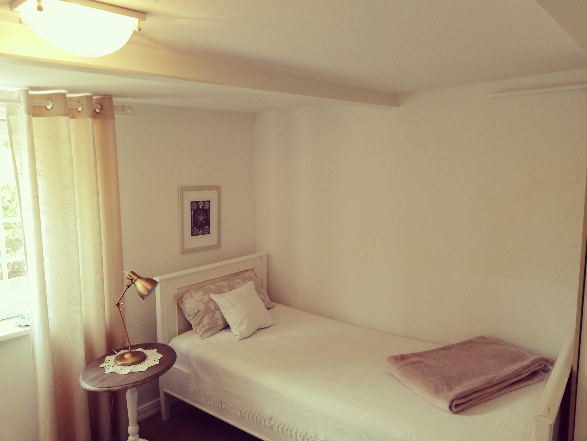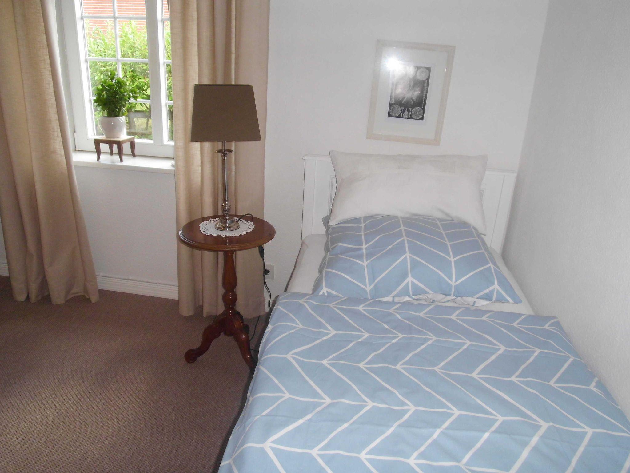 • 2. Schlafzimmer mit einem Einzelbett, 1 Nachttisch mit Leselampe, Kommode, die Betten sind für Sie bezogen.