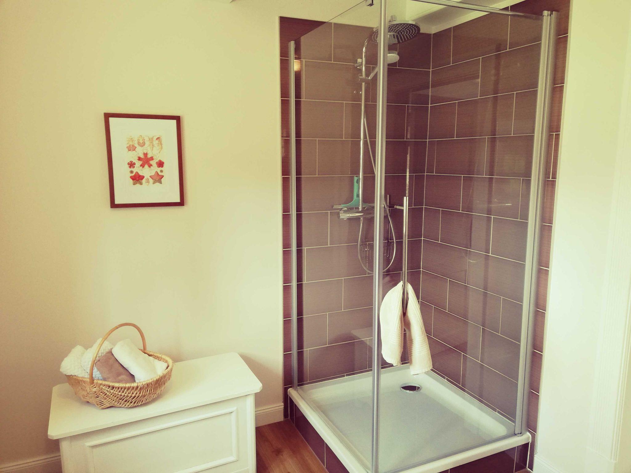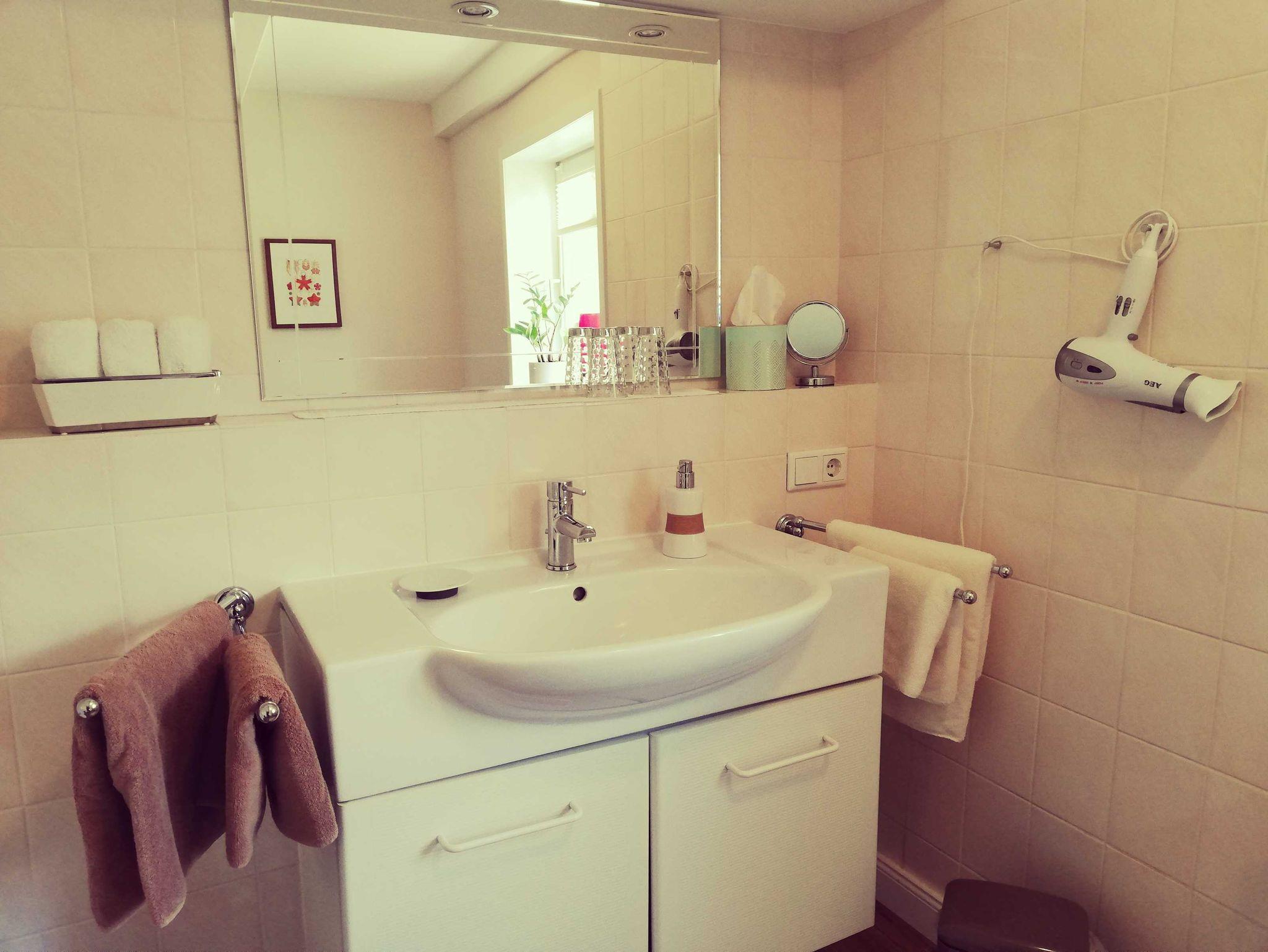 • Großes Bad mit Dusche und WC, Haartrockner.