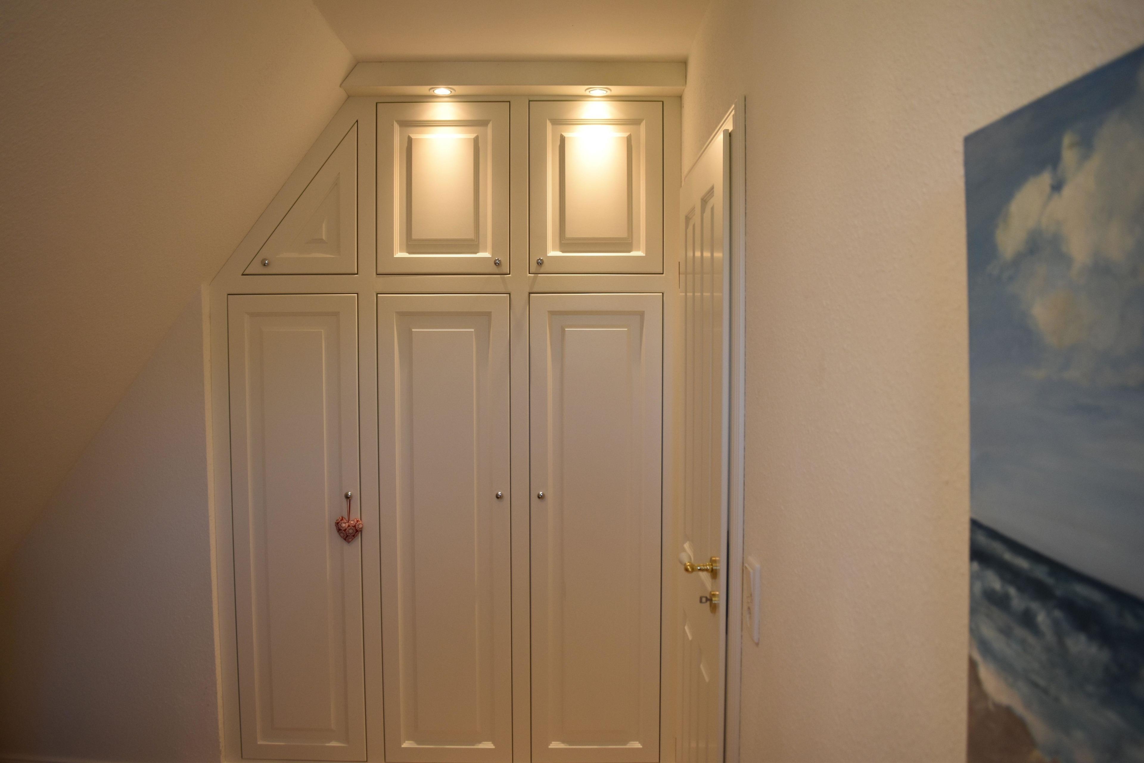 Im Schlafraum erwartet die Gäste ein französisches Bett und ein geräumiger Einbauschrank.