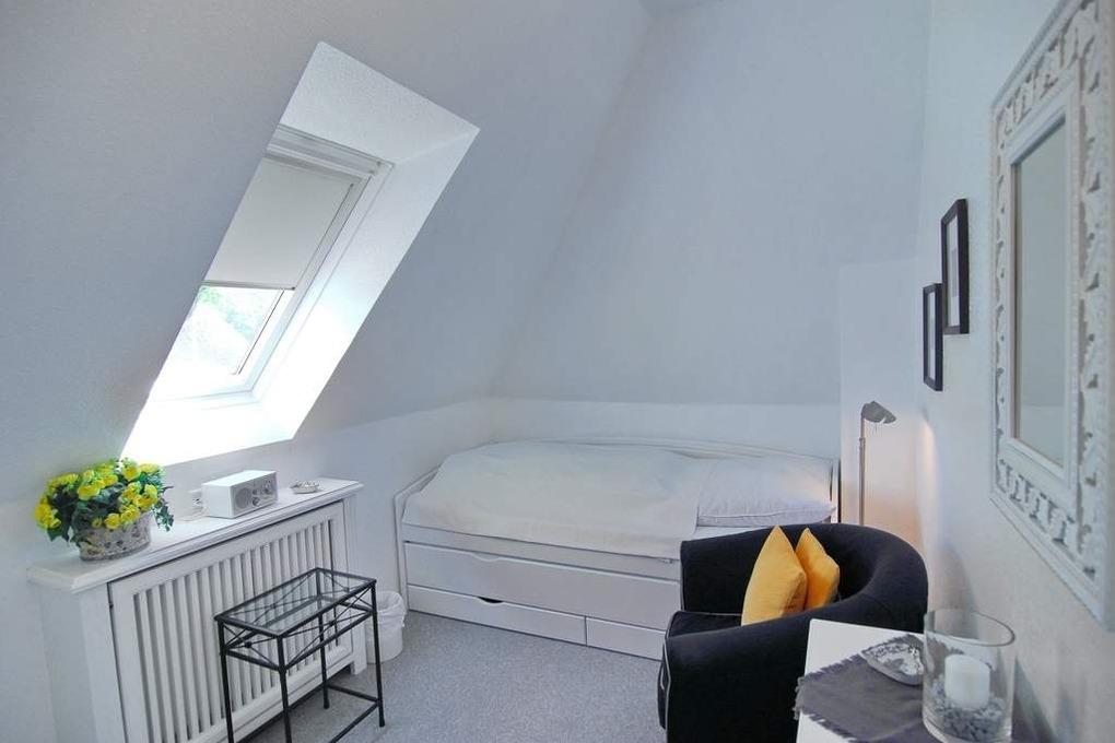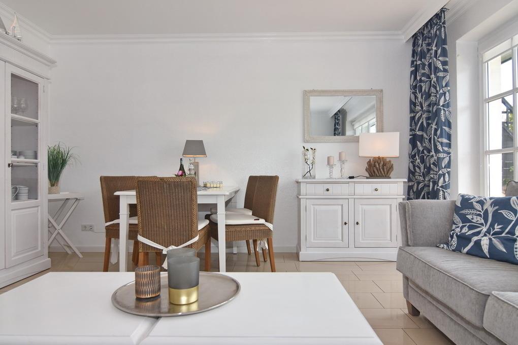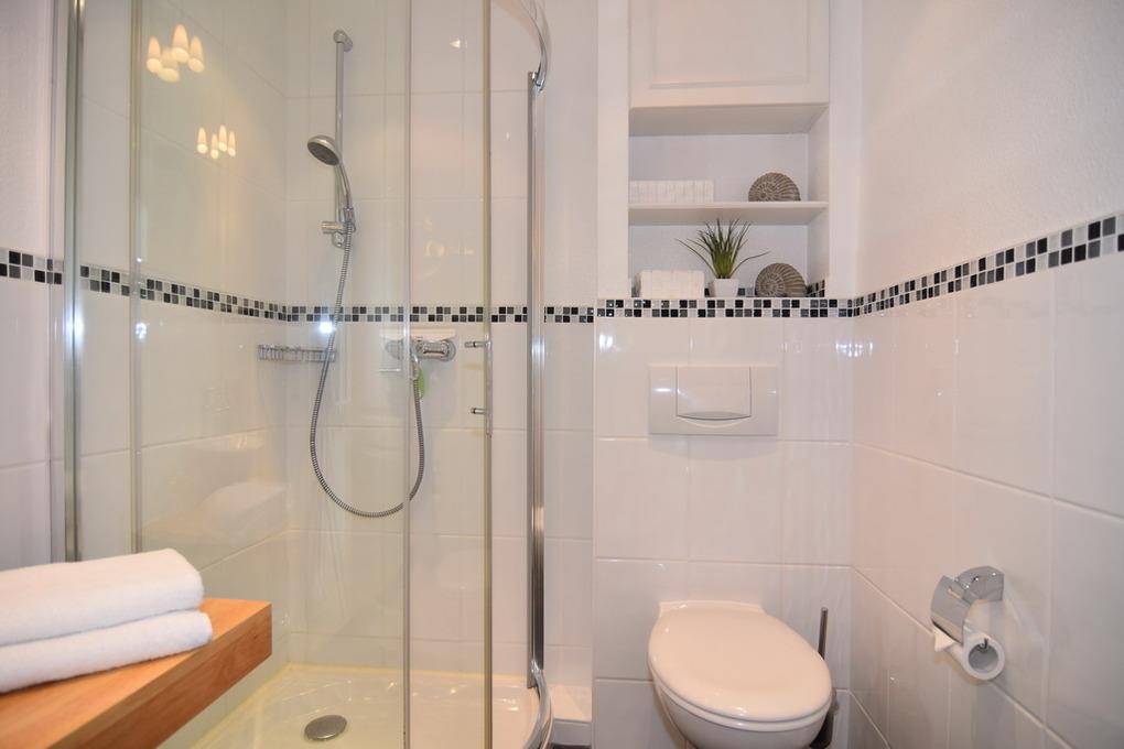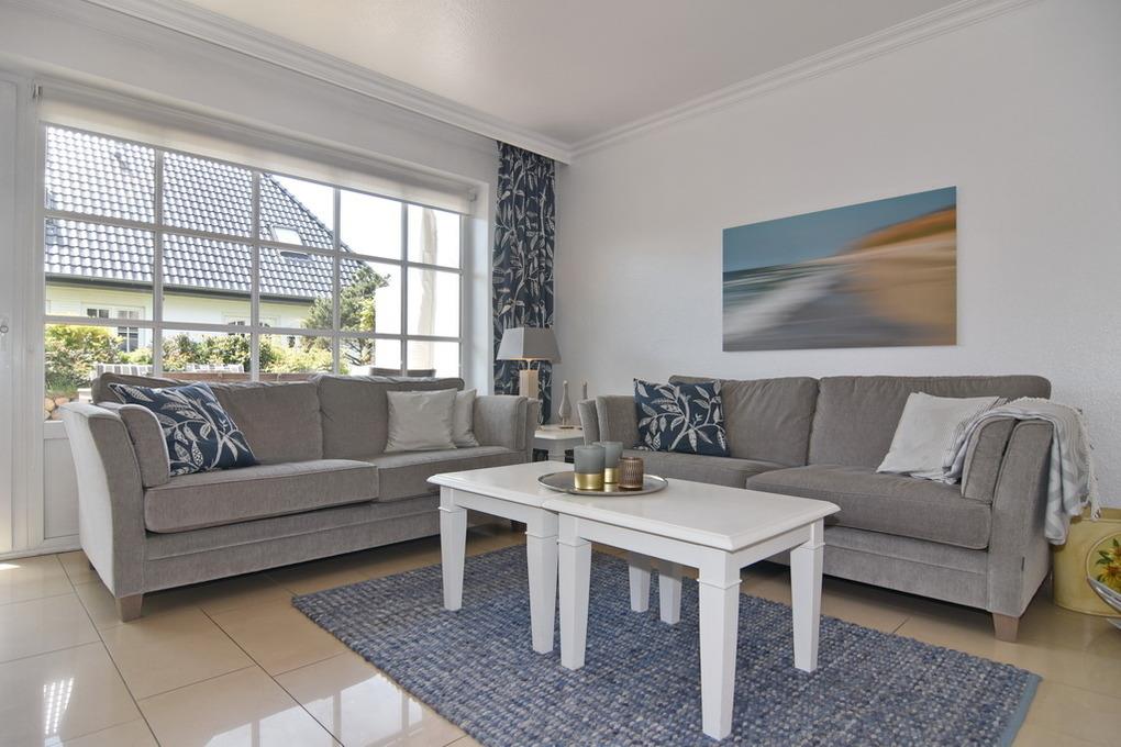 Exklusives Endhausteil, ca. 95 m², Nichtraucher. EG: Wohnzimmer mit zwei 2 Sitzer-Couchen und Essplatz, TV, Stereoanlage, DVD, Internet (ohne Gewähr), Südterrasse mit Strandkorb und Gartenmöbel, separate Küche mit Geschirrspüler, Backofen mit Dampfgarer, kleiner Gefrierschank, Duschbad/WC, Abstellraum mit Waschmaschine und Trockner, EG ist komplett gefliest. OG: kleines Schlafzimmer mit Einzelbett (100x200) und Sessel, großes Schlafzimmer mit Doppelbett (180x200), TV, Sessel und Südbalkon, Vollbad/WC, offenes DG mit Doppelbett (160x200) an der Schräge und Sessel. Tierhaltung ist nicht gestattet. PKW-Stellplatz am Haus. PKW-Stellplatz am Haus. Bettwäsche und Handtücher sind zur Anreise aufgezogen. Kinderreisebett und Hochstuhl befinden sich im Dachgeschoss.