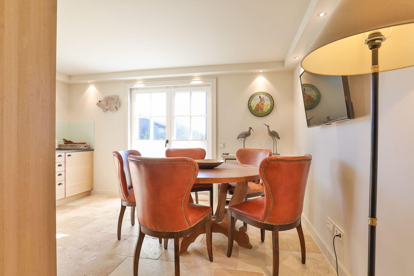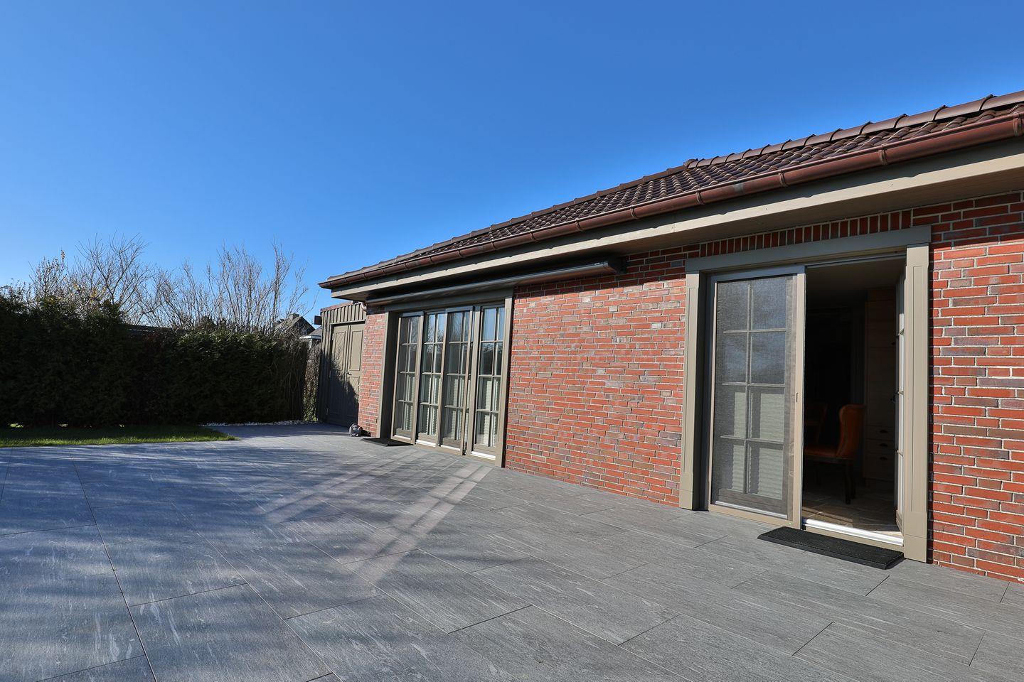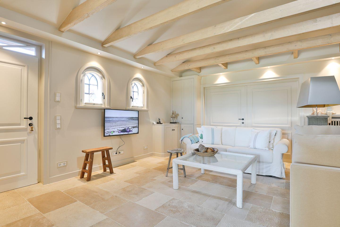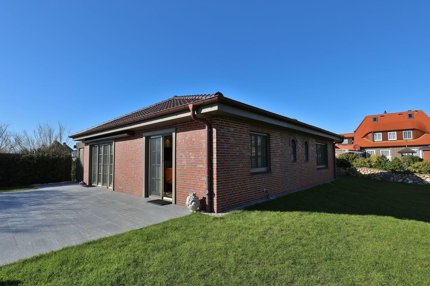 Traumhaftes Ferienhaus in Morsum mit sonnigen Terrassen, riesigem Garten (5.000 qm) und eigenem Sauna- & Fitnesshaus. Stilvoller Wohnbereich, gemütliches Schlafzimmer mit Kingsize-Bett, zwei moderne Bäder und eine hochwertige Küche mit Essbereich. Perfekt für Erholung und Genuss in absoluter Ruhe – ein Hund ist herzlich willkommen.