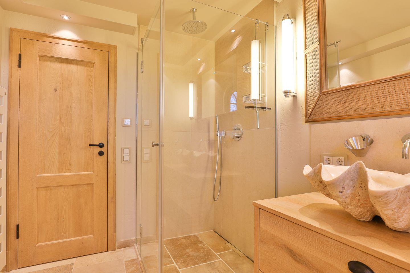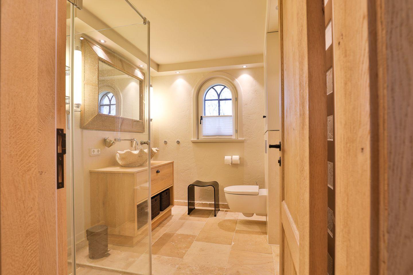 verfügt das Haus über zwei Badezimmer mit Dusche. Im Badezimmer sollten Sie auf keinen Fall den Blick auf den absolut einmaligen Waschtisch verpassen. Wir versprechen: Es lohnt sich und ja es ist echt! Auch die vollausgestattete
