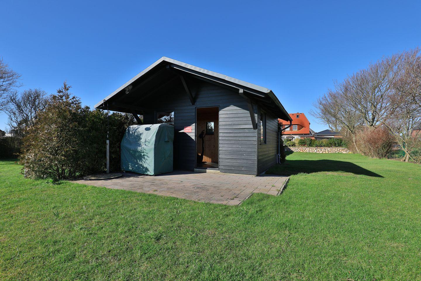 Um den ganzen Komfort abzurunden, gibt es ein weiteres Gartenhaus. Hier finden