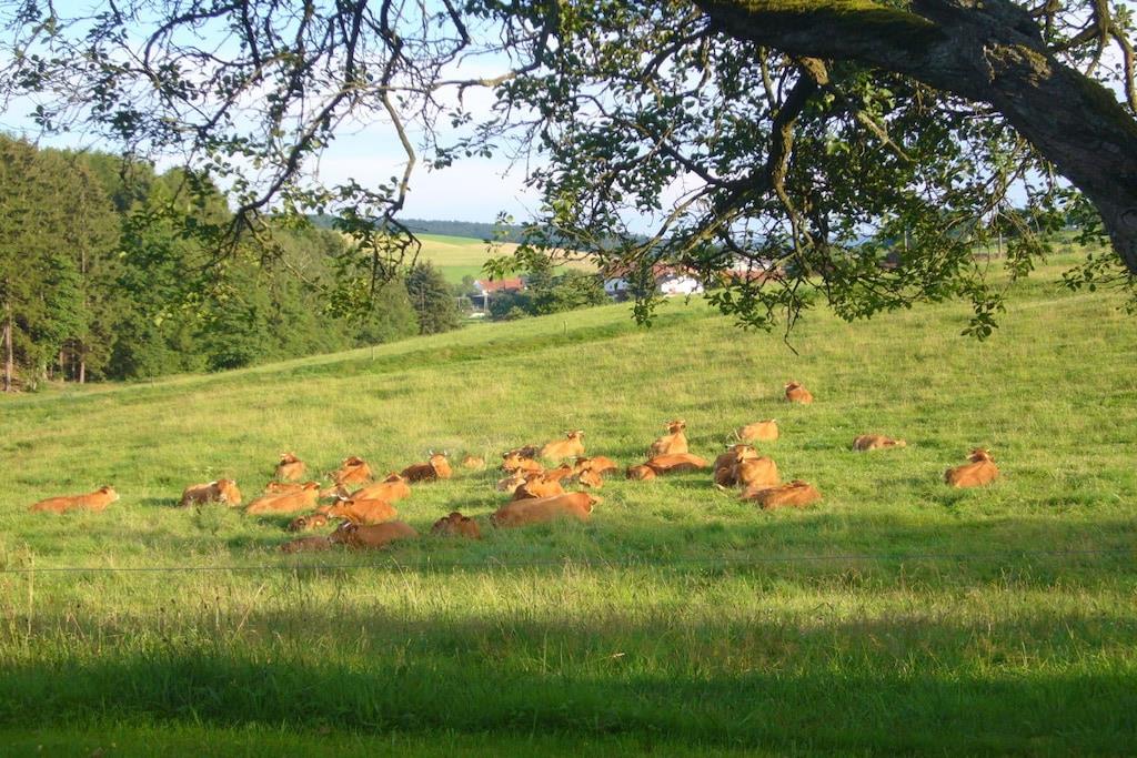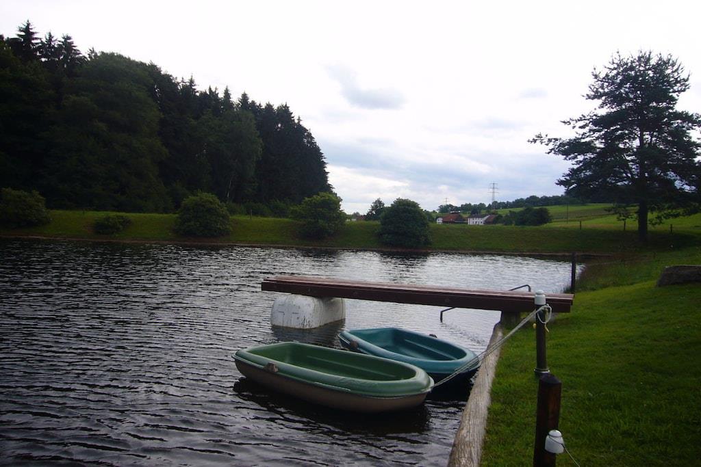 Machen Sie doch einmal Urlaub in einem Ferienhaus am See! Auf unserem 40 ha großen Waldhubenhof, den wir als reinen Grünlandbetrieb mit einer Mutterkuhherde bewirtschaften, bieten wir dieses massiv gebaute und ganzjährig mietbare Ferienhaus für 4 Personen (evtl. plus 1 Kind) an. Direkt am Haus befindet sich eine großzügige Liege- und Spielwiese für unsere großen und kleinen Gäste. Unterhalb des Ferienhauses im Tal haben wir für unsere Gäste einen 5000 qm großen Freizeitteich zum Baden und Bootfahren angelegt. Die angrenzenden Wälder laden zu entspannenden Spaziergängen ein. Durch unsere zentrale Lage zwischen Rhein, Main und Neckar bietet sich unser Ferienhaus als Ausgangspunkt für abwechslungs- und erlebnisreiche Tagesausflüge an.