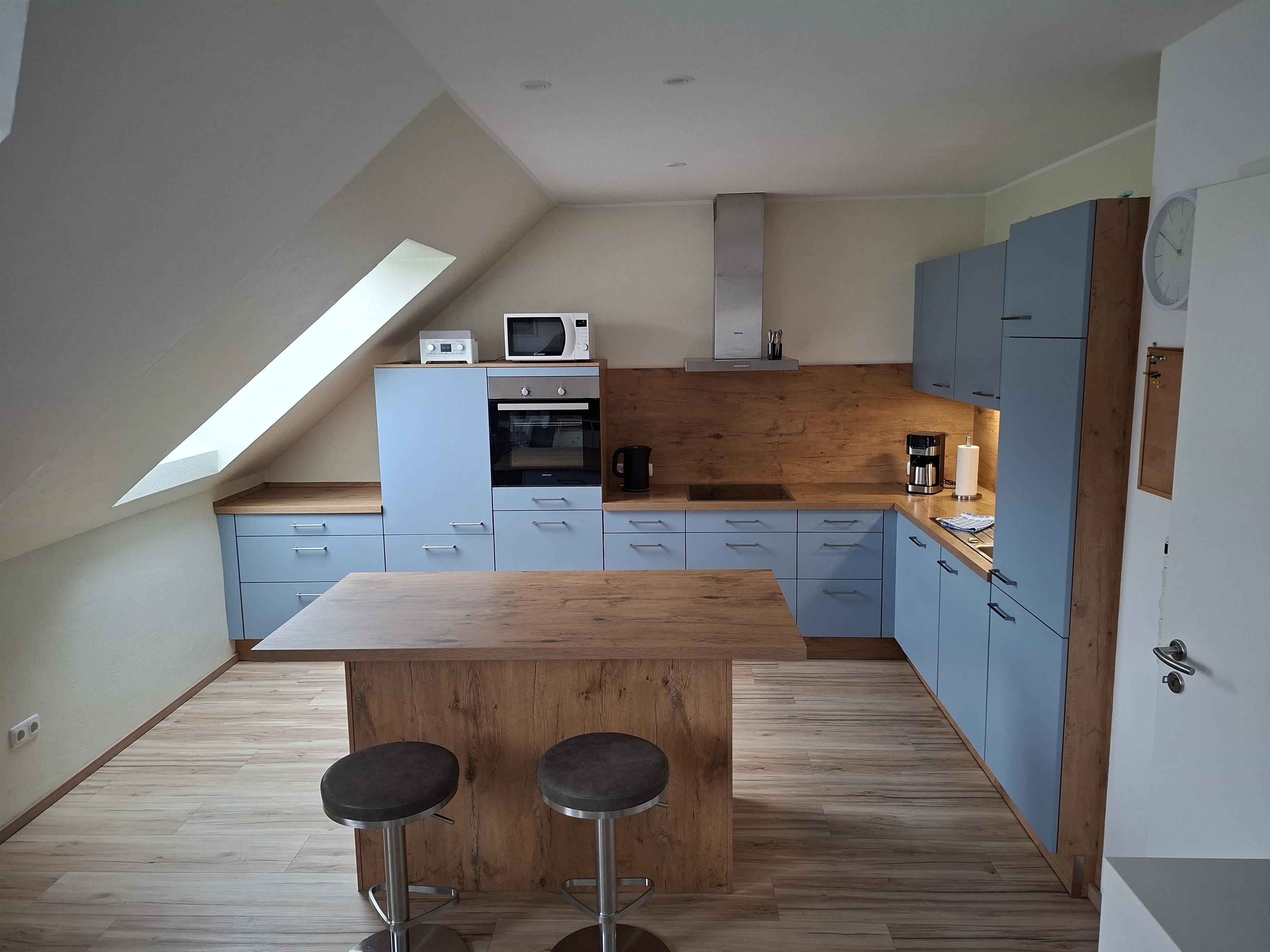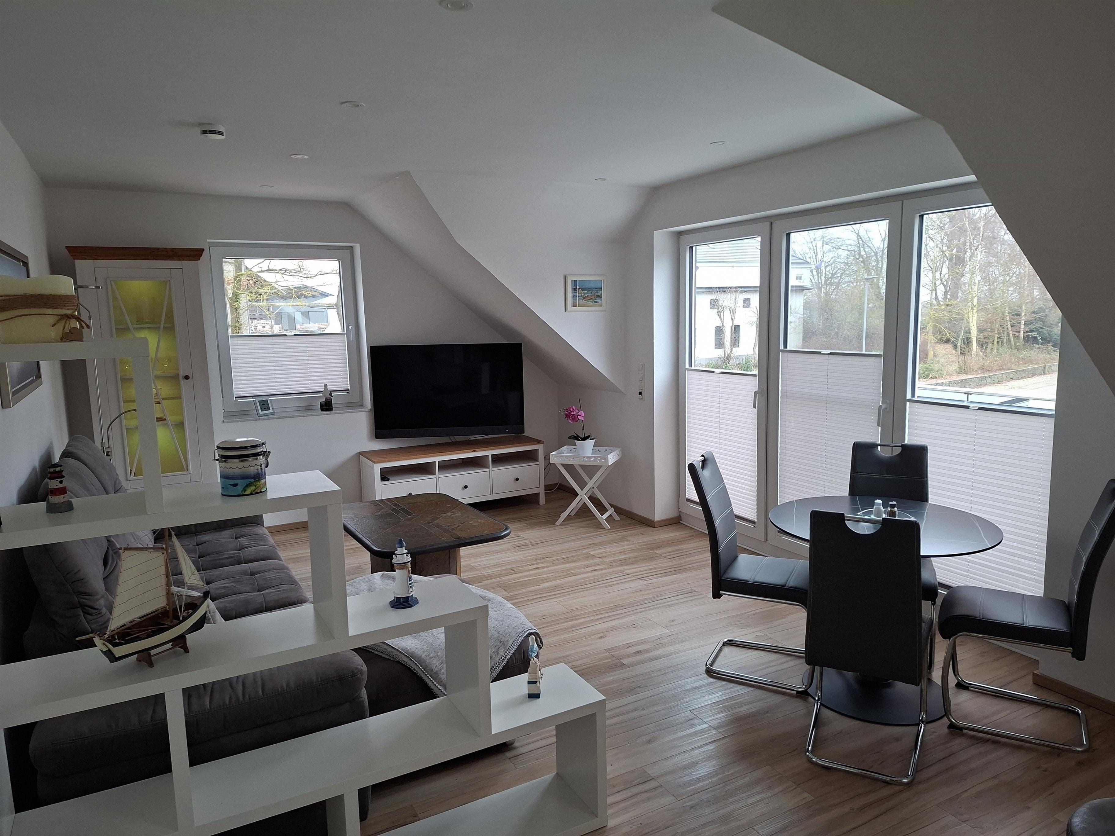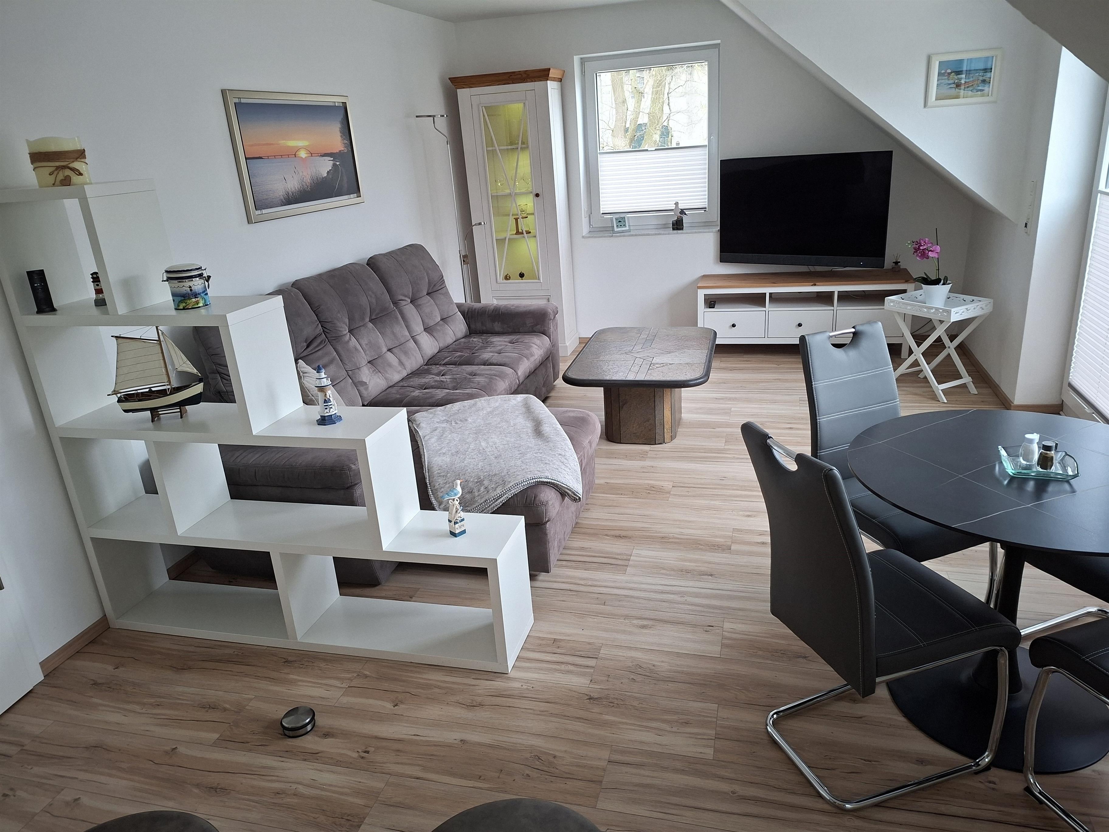 Der großzügige Wohnbereich mit integrierter Wohnküche bildet das Herzstück der Wohnung. Hier können Sie gemeinsam kochen, essen, lachen und entspannen. Die offene Gestaltung sorgt für eine freundliche und helle Atmosphäre, in der man sich vom ersten Moment an willkommen fühlt. Ein kostenfreies WLAN steht Ihnen selbstverständlich zur Verfügung.