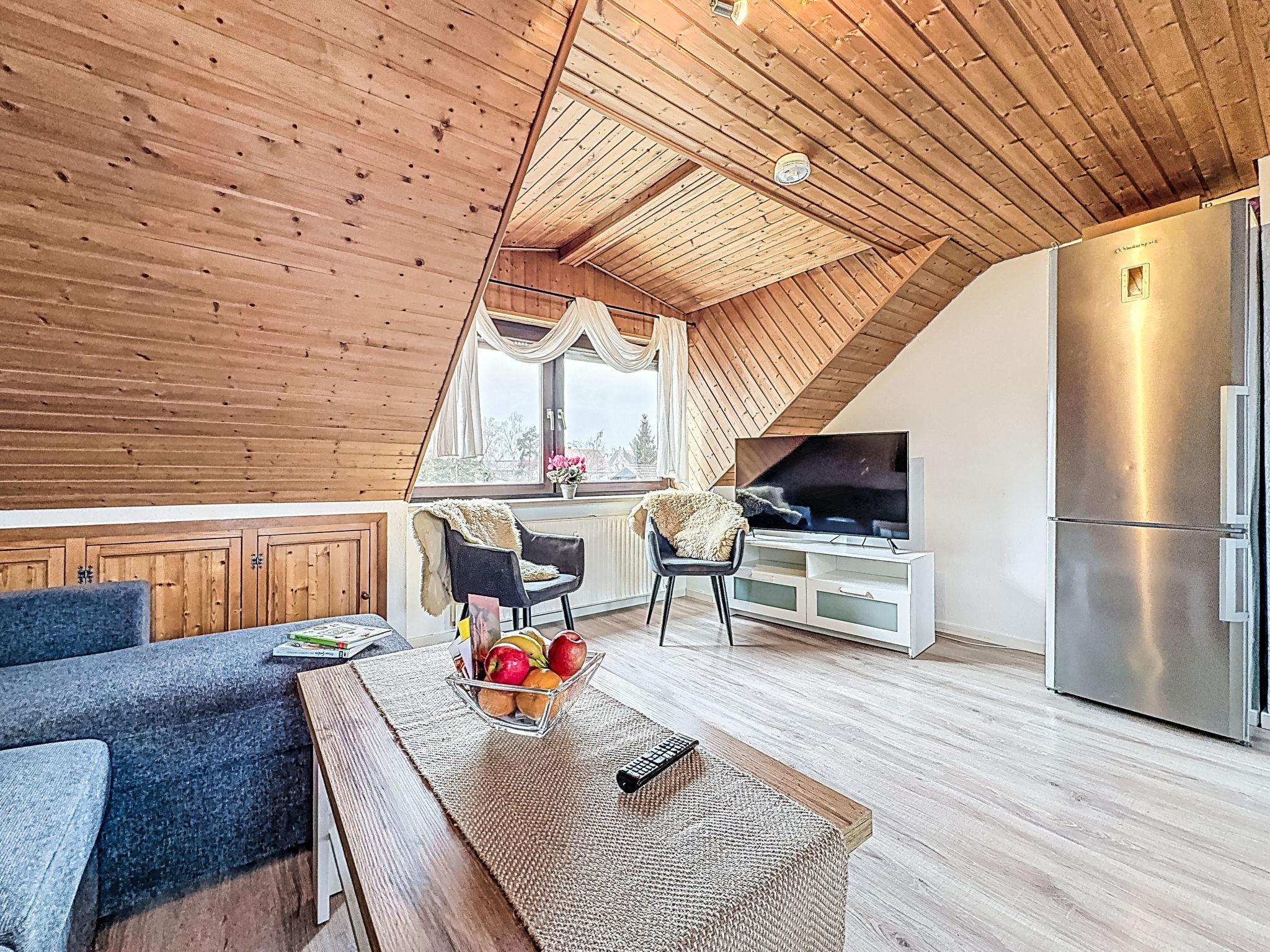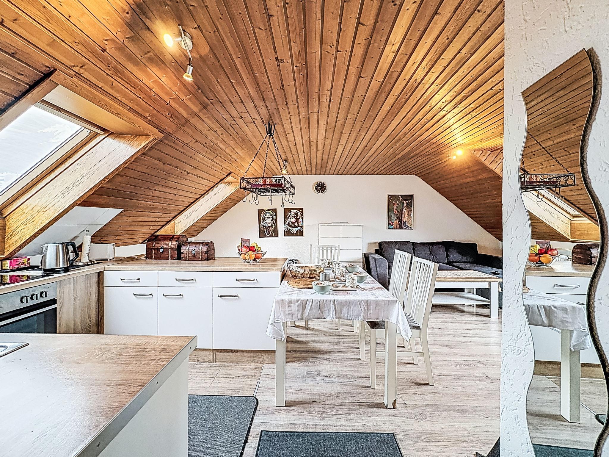 "münchenverrückt", 2-room apartment 68 m2, on the top floor. Object suitable for 2 adults + 2 children. Cosy and wooden furniture furnishings: top floor: living/sleeping room with sloping ceilings with 1 double sofabed (160 cm, length 200 cm), dining table and digital TV. 1 room with sloping ceilings with 1 double bed (2 x 100 cm, length 200 cm). Open kitchen (oven, dishwasher, 4 ceramic glass hob hotplates, toaster, kettle, microwave, freezer, electric coffee machine). Bath/WC. Heating. Parking at the house. Please note: non-smokers only. Smoke alarm, fire extinguisher.
