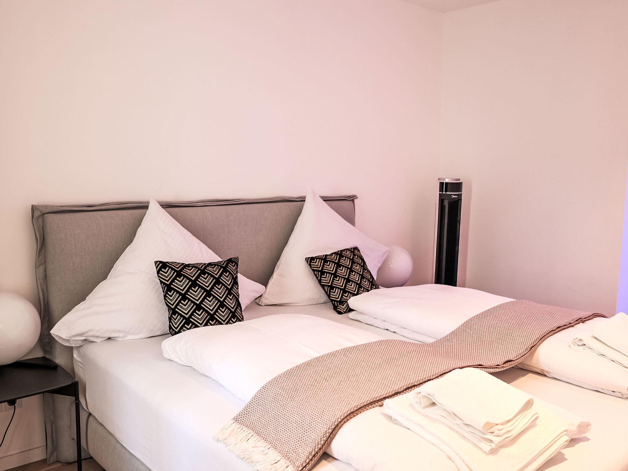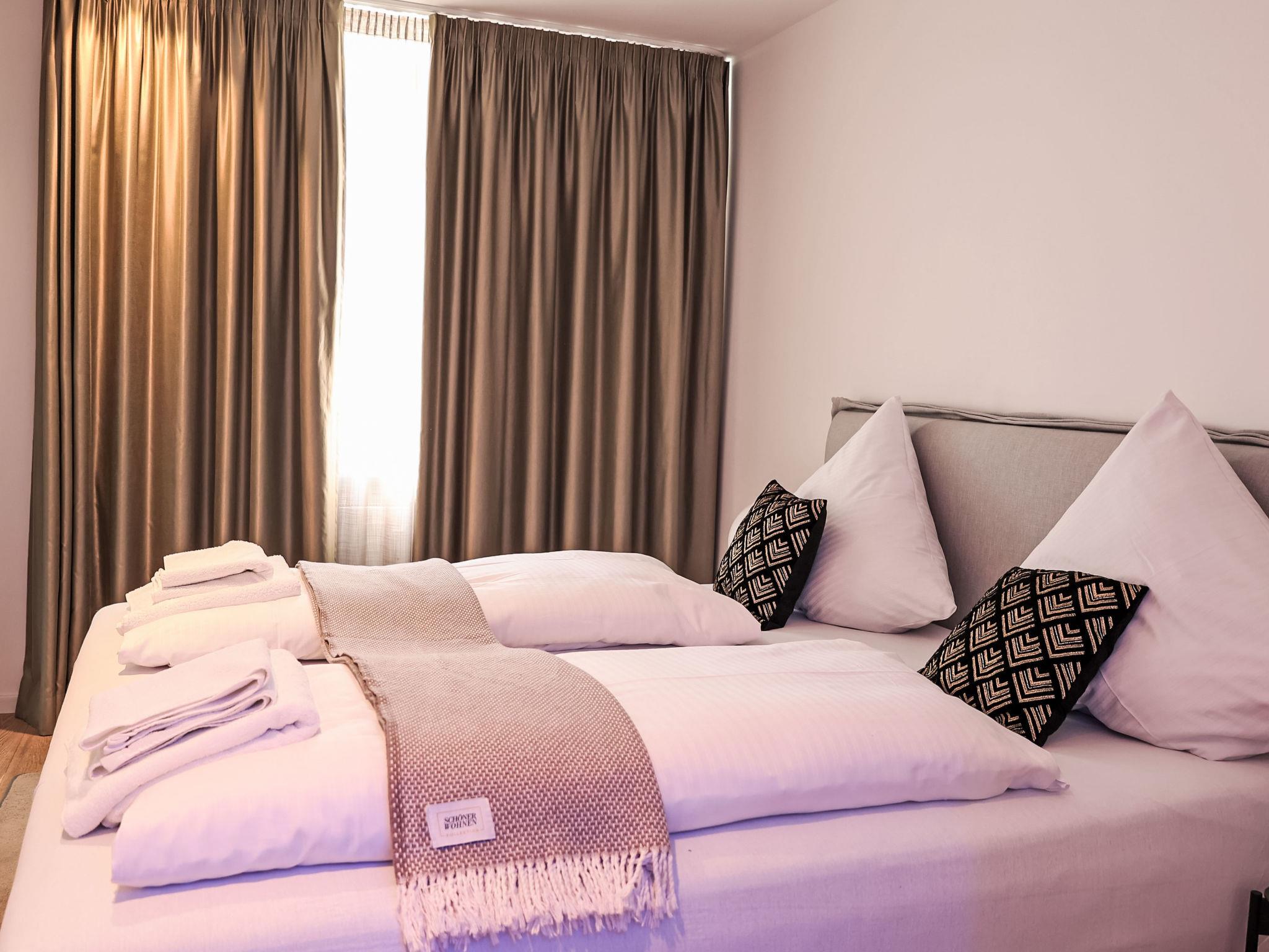 "Munich Finest Apartments 6", 3-room apartment 80 m2 on 1st floor. Modern furnishings: living room with 1 sofabed and TV. Exit to the balcony. 1 room with 1 double bed. 1 room with 1 double bed. Kitchenette (oven, dishwasher, 2 ceramic glass hob hotplates, toaster, kettle, microwave, freezer, electric coffee machine) with dining table. 2 showers/WC. Electric heating. Balcony. Facilities: washing machine, safe, children's high chair, baby cot, hair dryer. Please note: non-smokers only. Smoke alarm. 244932