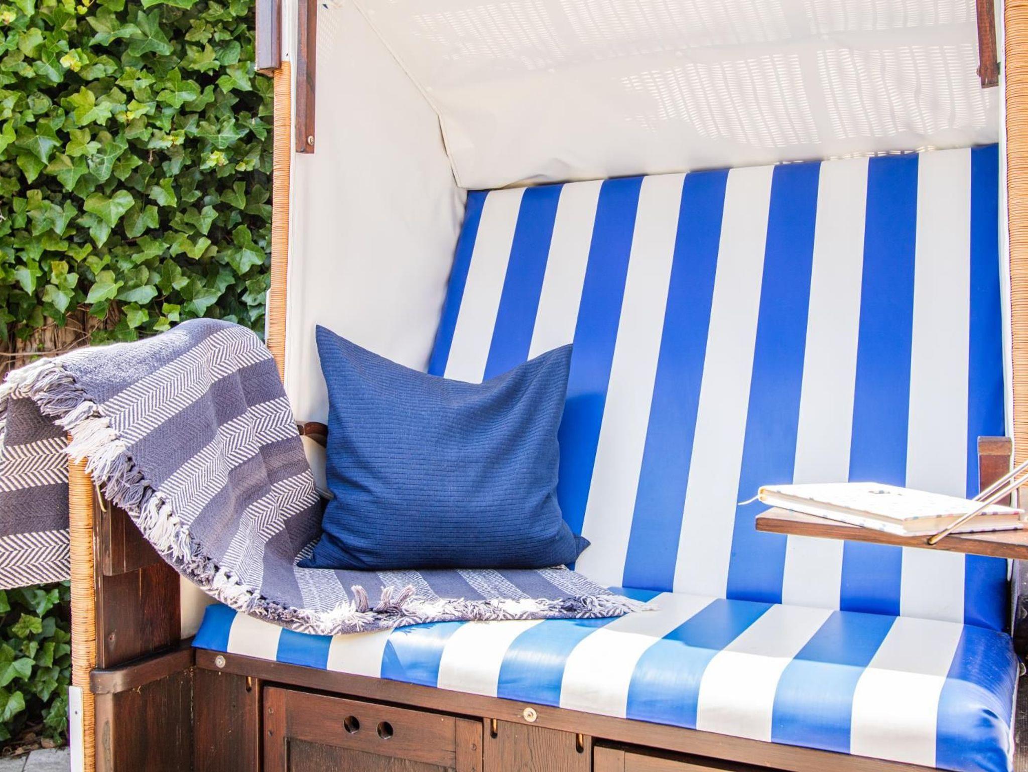 möblierte Terrasse, Strandkorb, PKW-Stellplatz, Radabstellplatz.