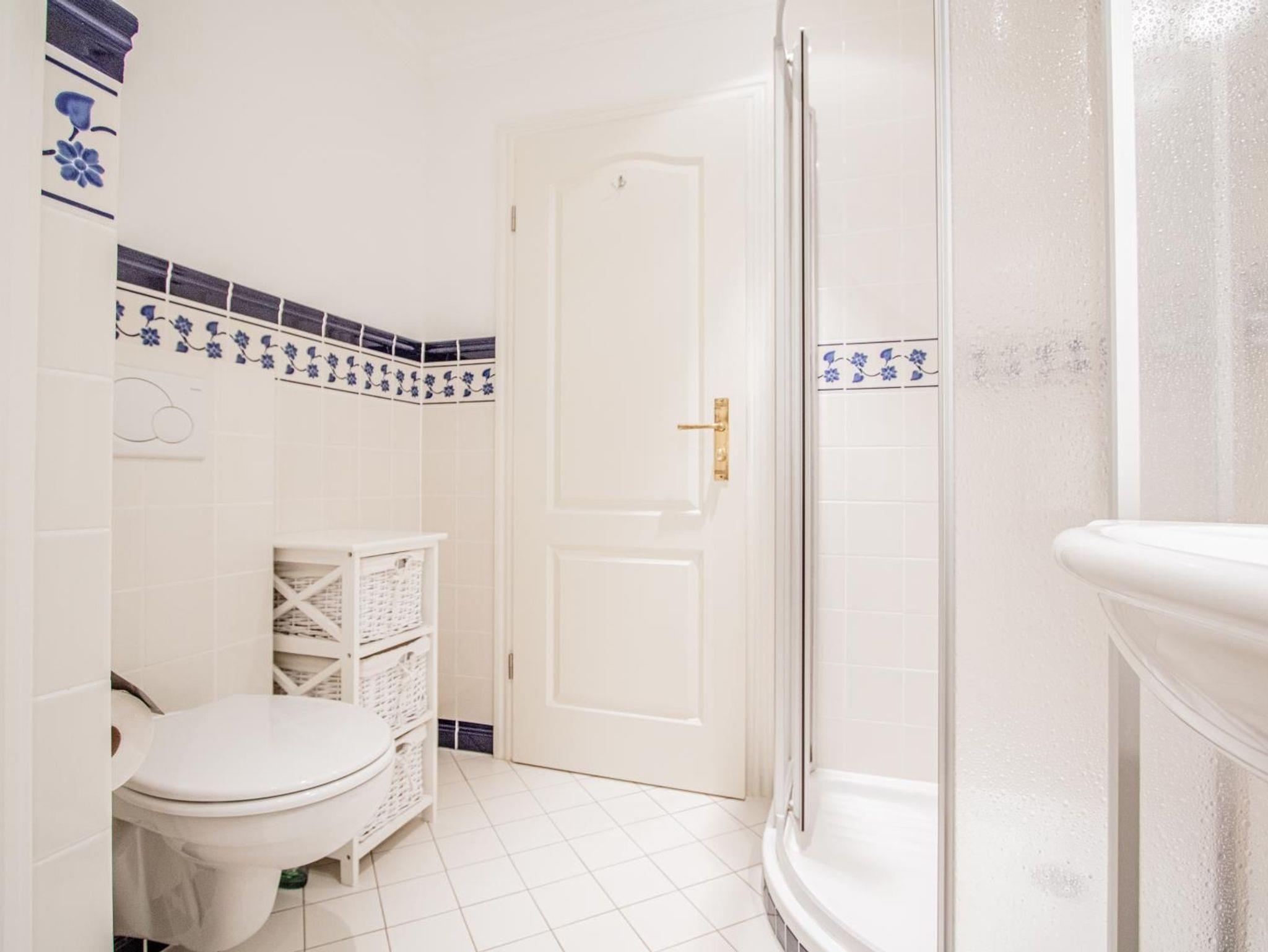 WC, Dusche, Waschbecken, Spiegel, Föhn, Waschmaschine und Trockner. Ausreichend Handtücher und Vorleger.