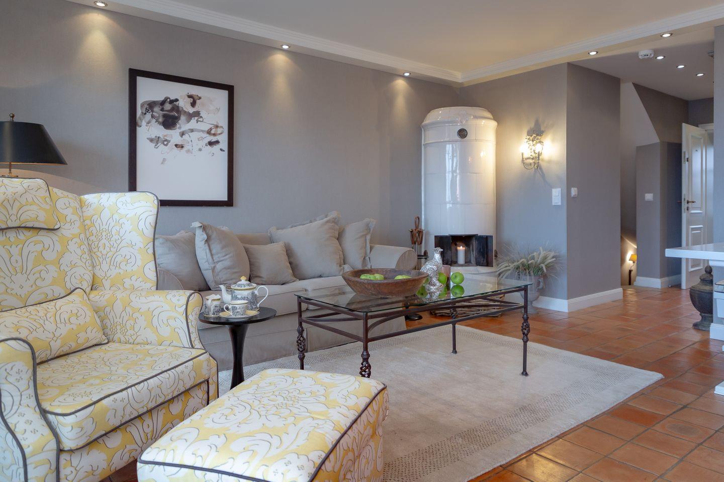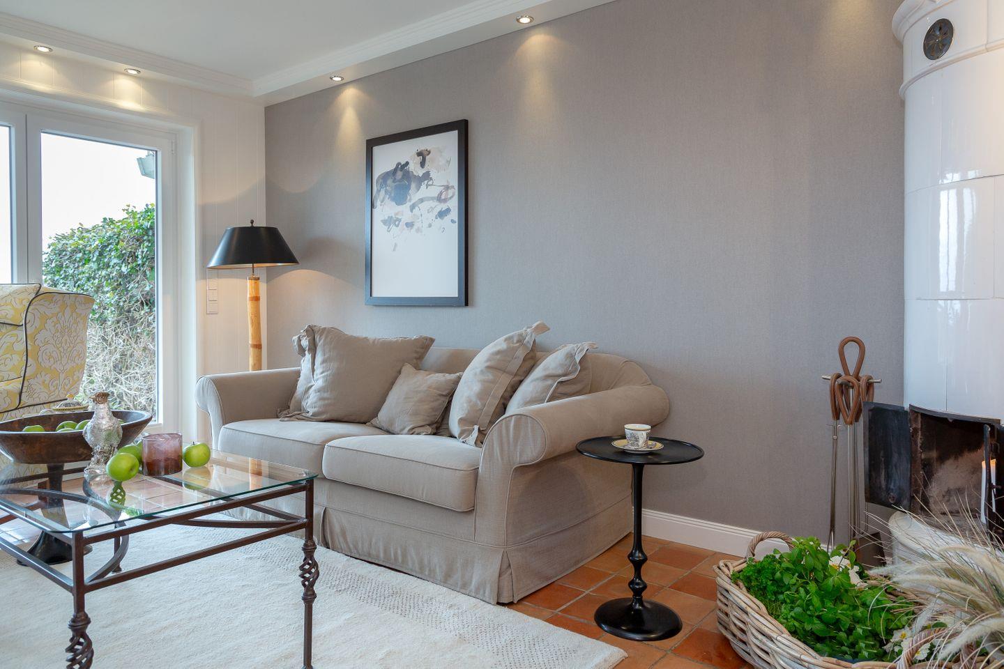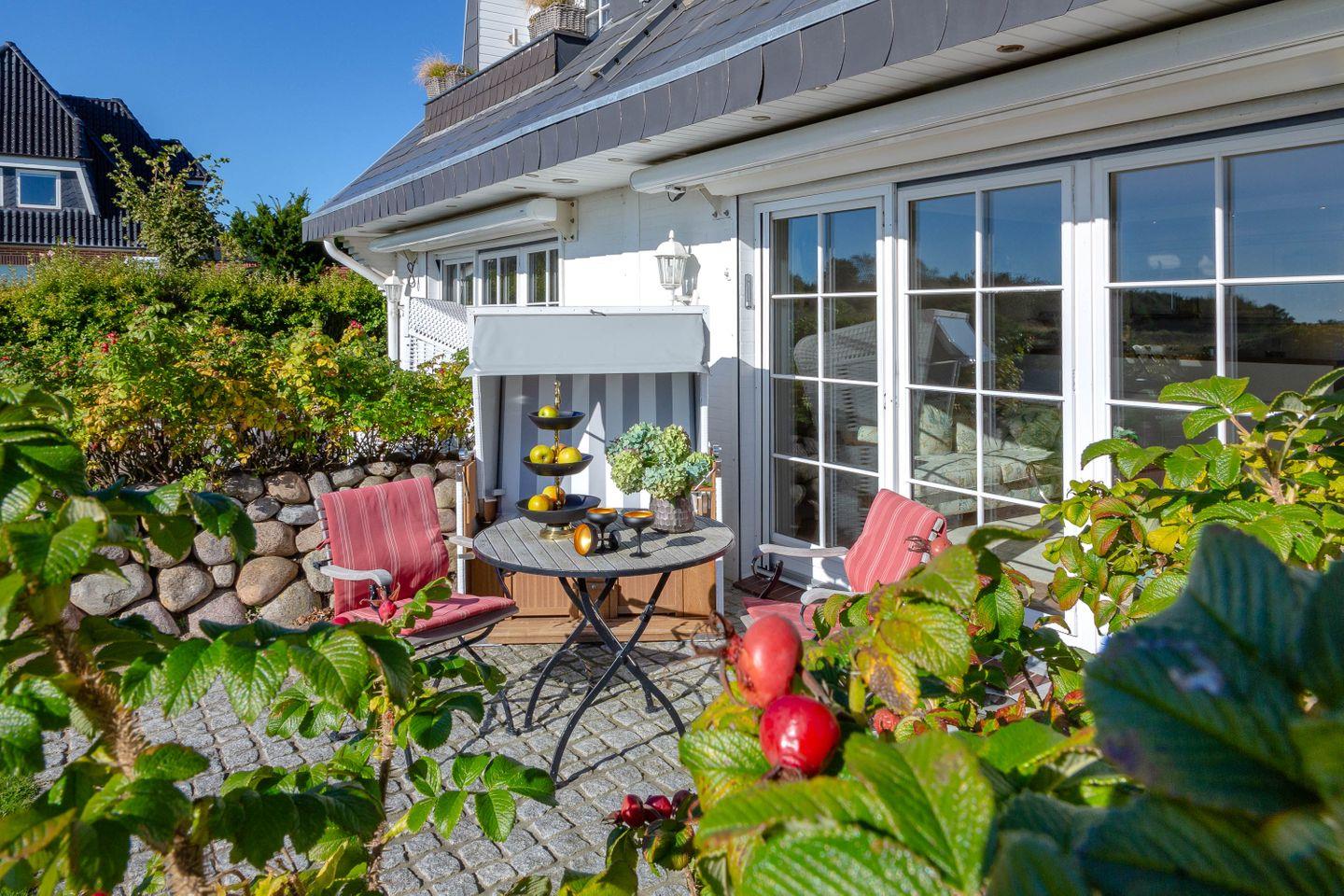 Sie lieben die himmlische Ruhe und tauchen nur ab und an gerne ins pulsierende Inselleben ein?Dann ist unsere Wohnung Sönshörn 20 in Munkmarsch ein ausgezeichnetes Feriendomizil für Sie. Auf einem naturbelassenen Heidegrundstück direkt am Wattenmeer befindet sich dieses herrliche Quartier für bis zu drei Personen, das wir gerne als „Ruheinsel auf der Insel“ bezeichnen. Hier empfangen Sie ein stilvoller, beheizbarer Kachelboden, der alte Mylin-Ofen und ein Sessel aus englischen Leinen. Zur Ausstattung gehören auch hochwertige Holzeinbauten, Wandmalereien sowie Porzellan von Villeroy & Boch. Dieses Refugium besitzt eine Landhausküche sowie Bäder mit Gianni-Versace-Fliesen. Genießen Sie das naturnahe Heidegrundstück mit einer großen Terrasse, auf denen Ihnen auch Gartenmöbel und –Liege von Garpa zur Verfügung stehen. Diese herrliche Ferienwohnung besitzt einen direkten Blick auf das Wattenmeer und die Keitumer Bucht.
