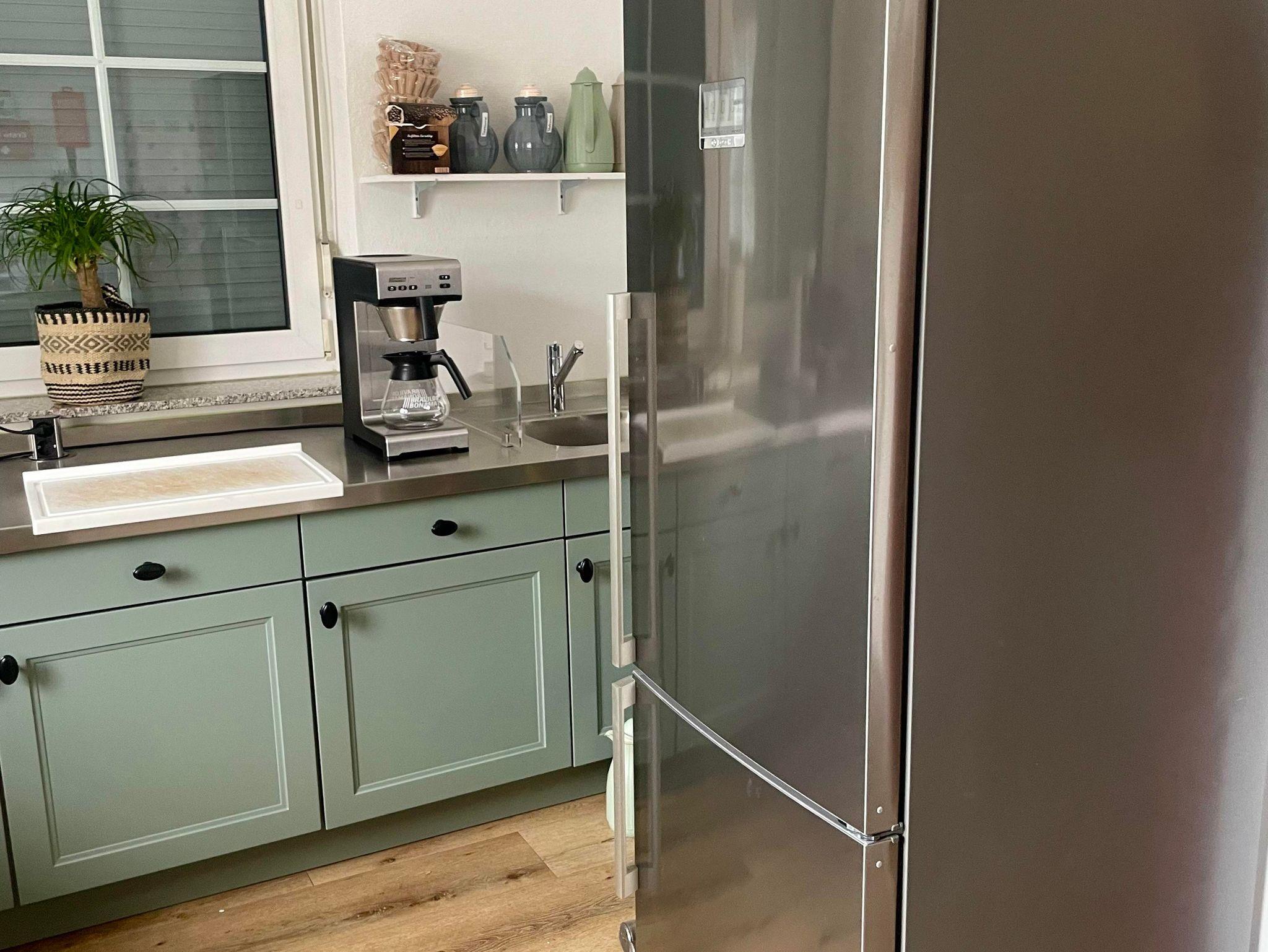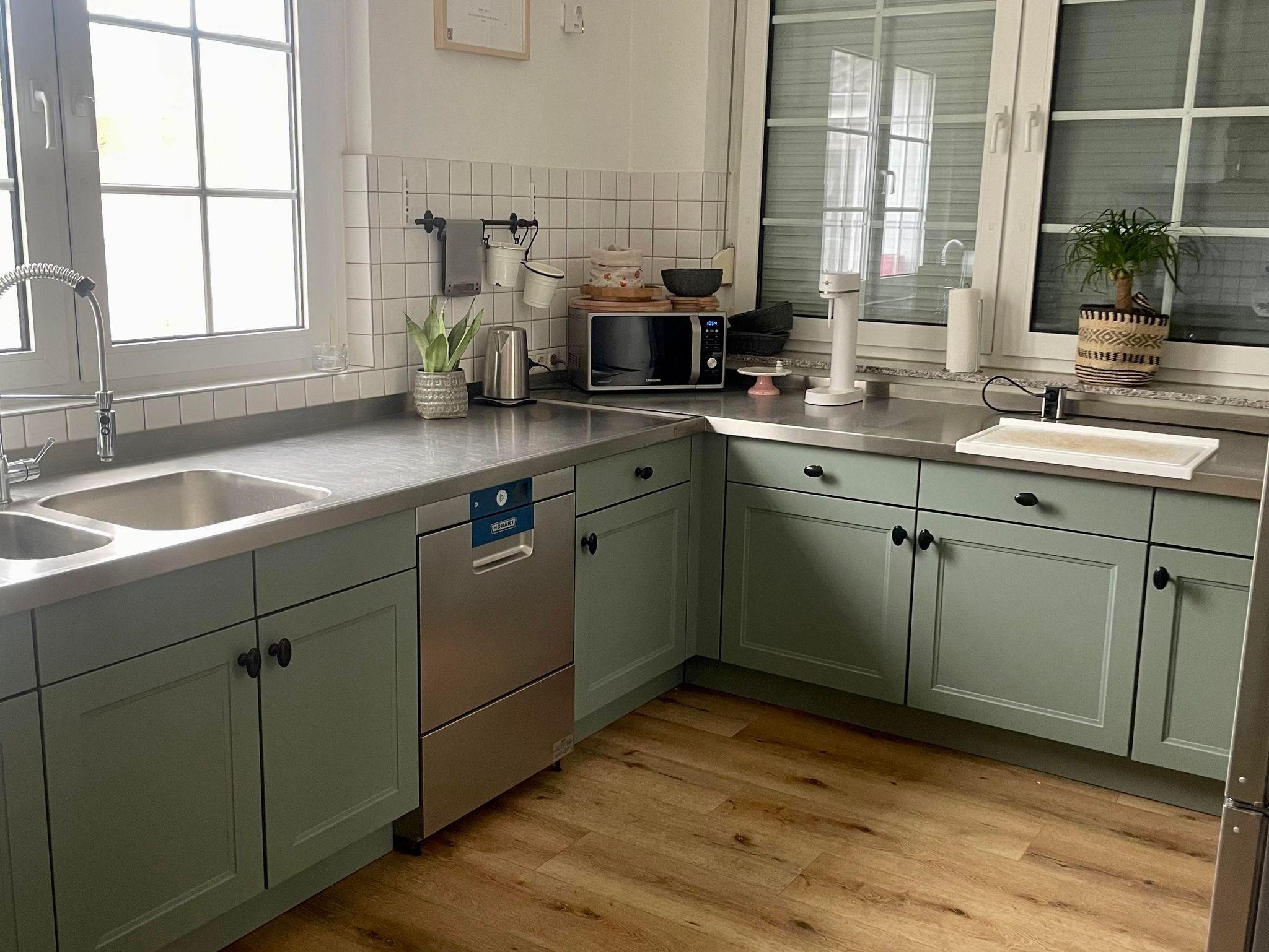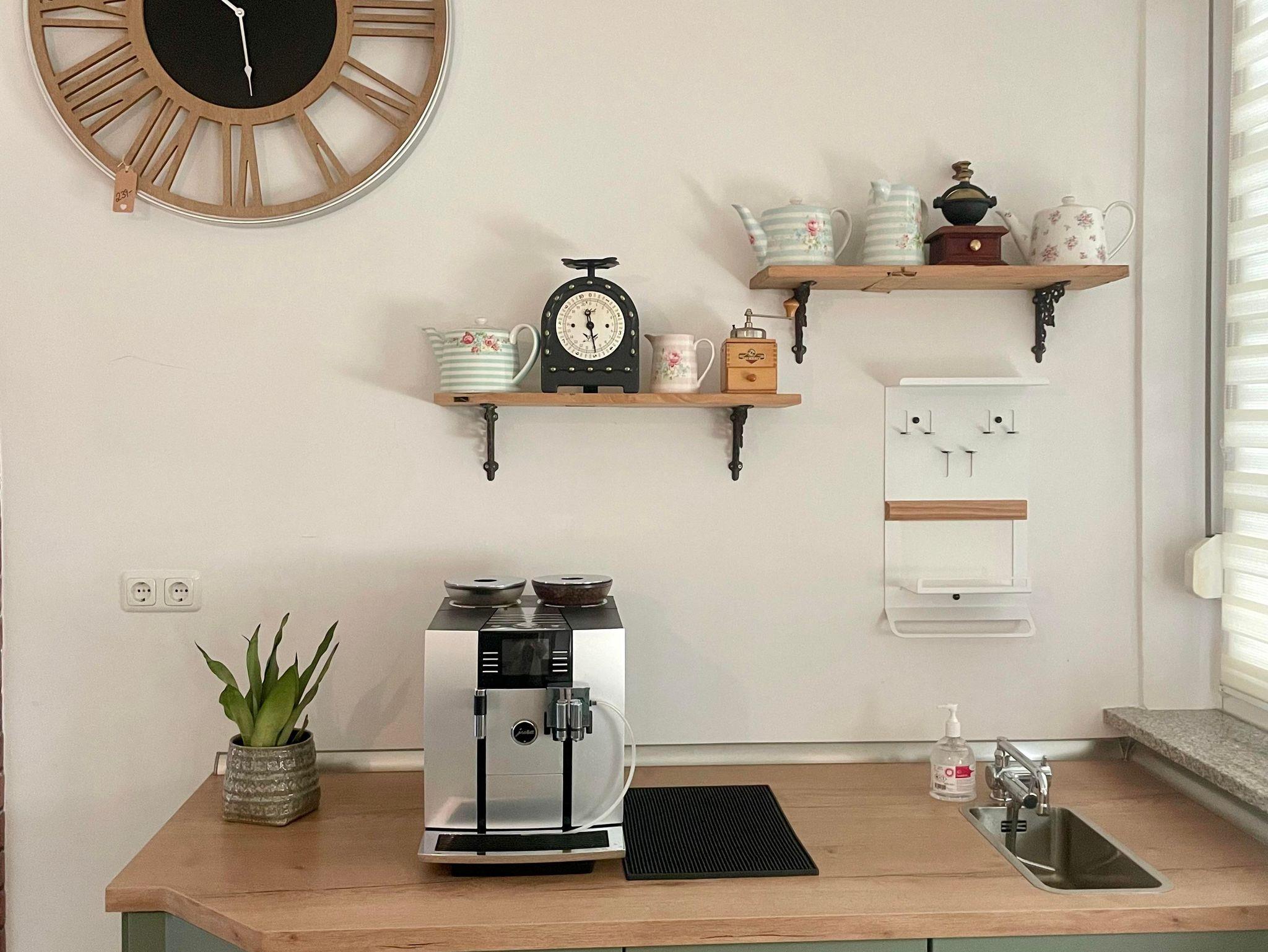 Die großzügige Küche ist mit einem Kaffeevollautomaten, Thermomix, einer Mikrowelle und einem Toaster ausgestattet.