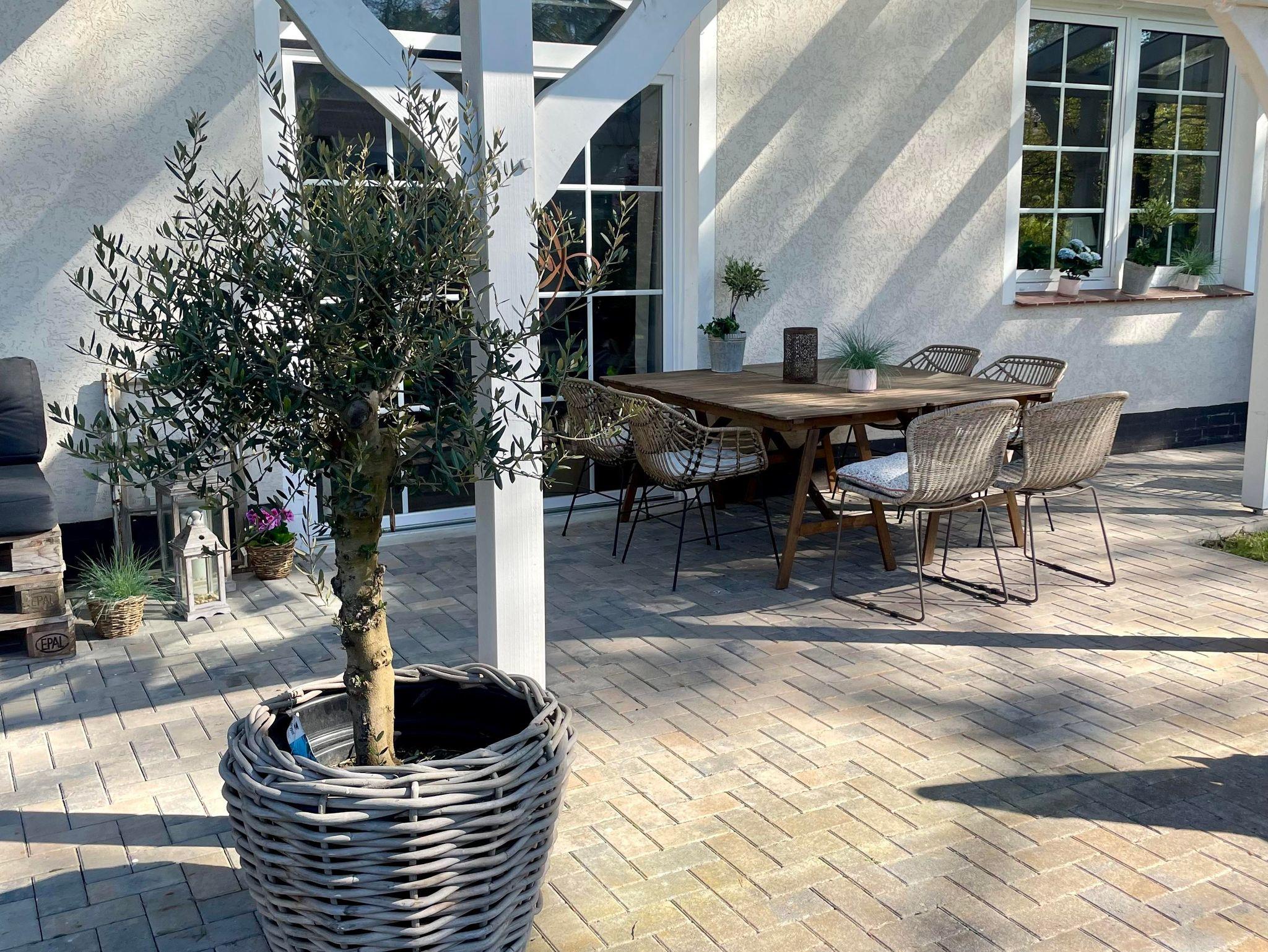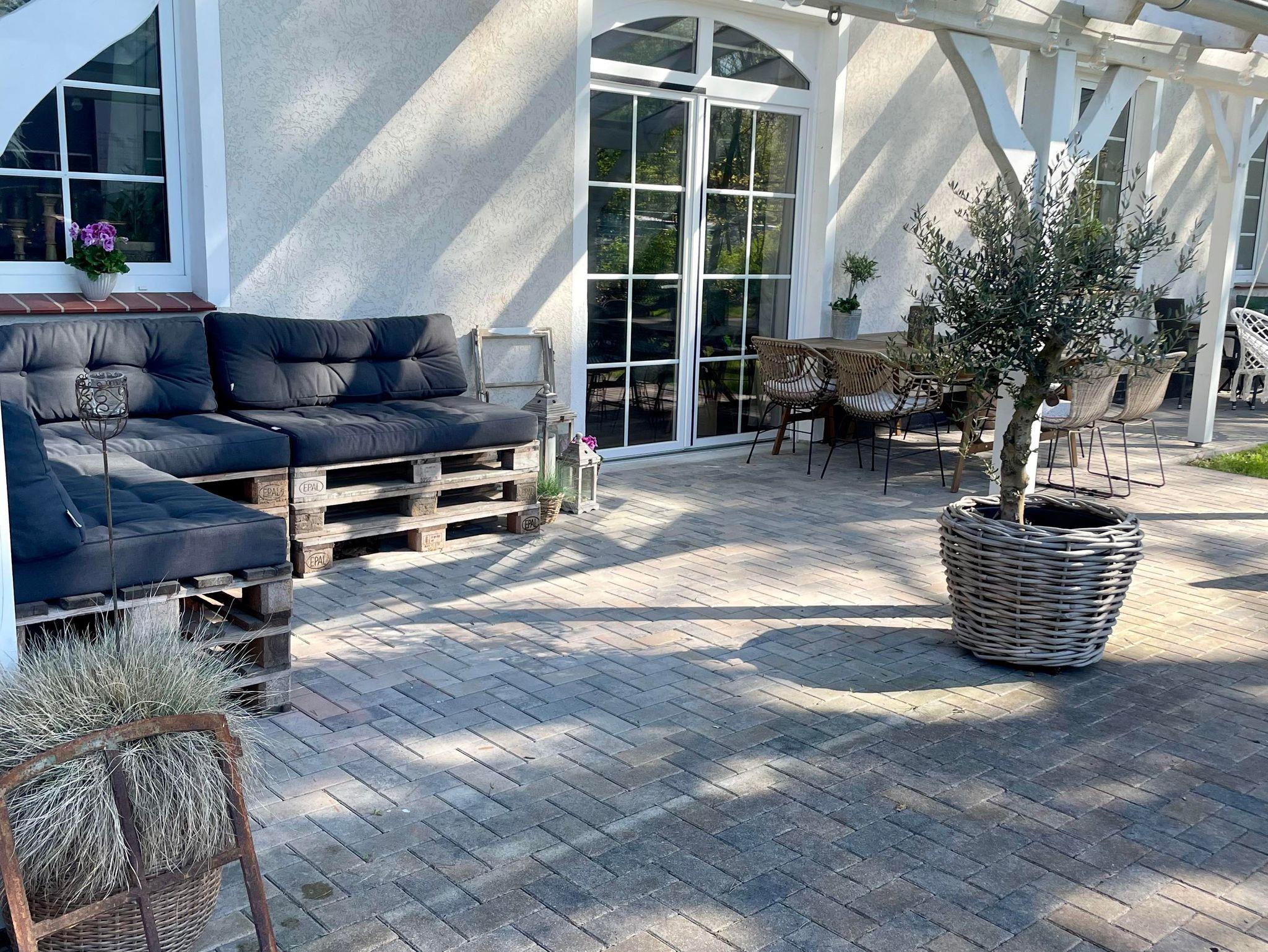 Der Aussenbereich lädt mit einer überdachten Terasse zum Relaxen ein.